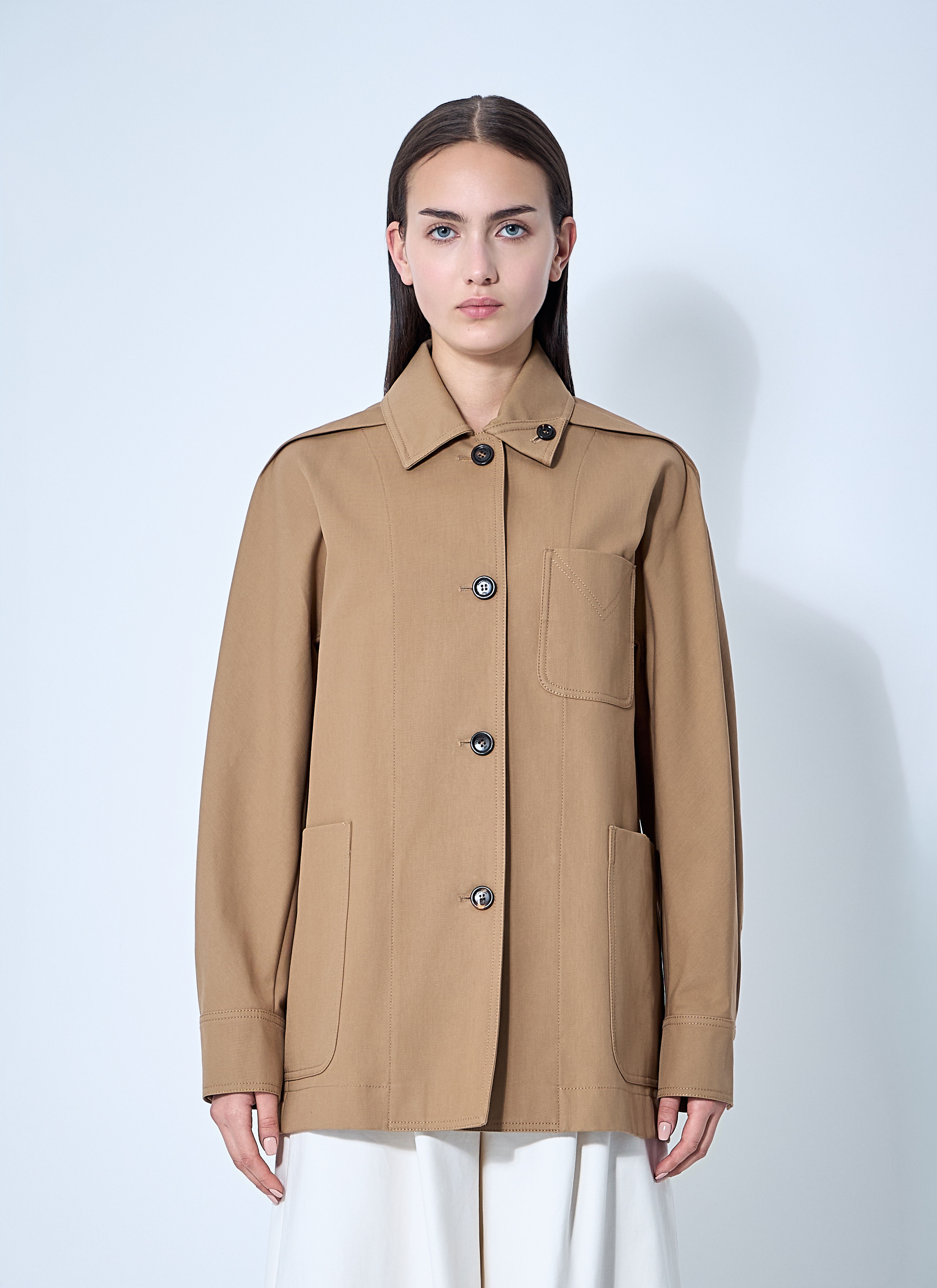 Moneta jacket in cotton weave. - Classic collar - Front button fastening - Long sleeves - Front patch pockets - Button-fastening cuffs - 100% Cotton. Dry clean - Color: Beige - Code: 2511041303600 002