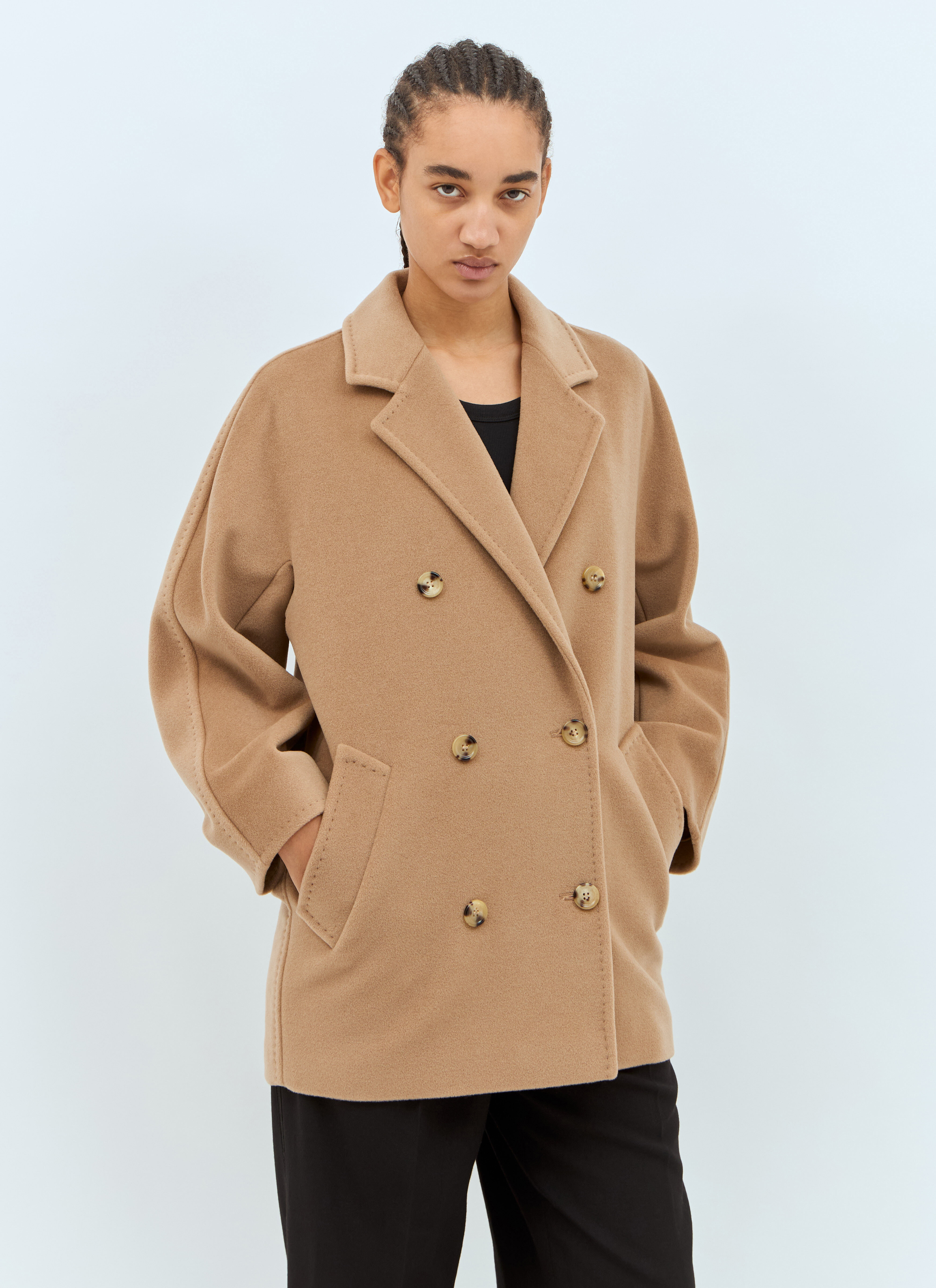 Short 101801 Icon coat in wool-and-cashmere-blend. - Notched lapels - Double-breasted-button fastening - Long sleeves - Side slip pockets - Made in Italy - 90% Wool, 10% Cashmere. Dry clean - Color: Beige - Code: 1086011600 001