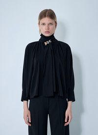 Button-down shirt in silk weave. - V neck with self-tie construction - Front button fastening - Long sleeves - Button-fastening cuffs - 100% Silk. Dry clean - Color: Black - Code: 1116081600 007