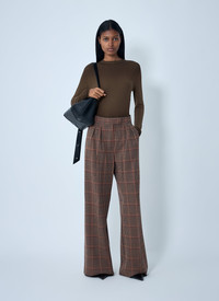 High-rise tailored pants in wool-and-cotton grain-de-poudre. - High rise - Top hook-and-eye and zip-fly fastening - Belt loops - Front pleats - Rear jet pockets - 51% Wool, 49% Cotton. Dry clean - Color: Brown - Code: 2521786052600 001