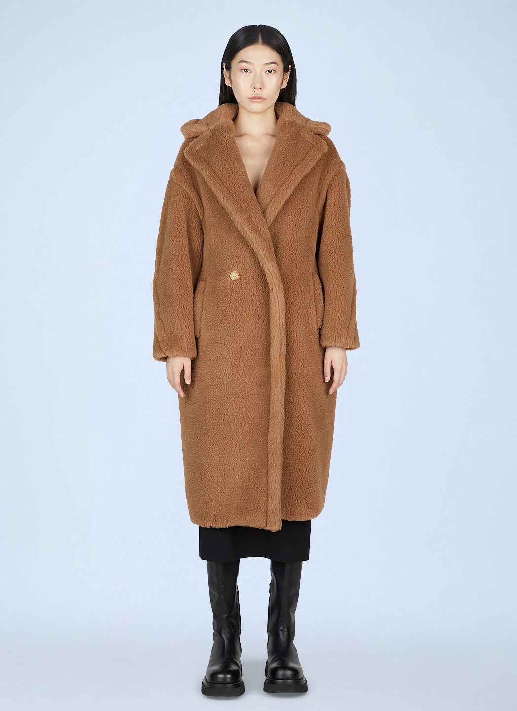 Teddy Bear Icon wool-and-silk blend doubel-breasted coat. - Oversized notch lapels - Double-breasted button fastening - Long sleeves - Side welt pockets - Fully lined - Made in Italy - 88% Wool, 12% Silk. Lining: 100% Viscose. Dry Clean - Color: Camel - Code: 2521016082600 001