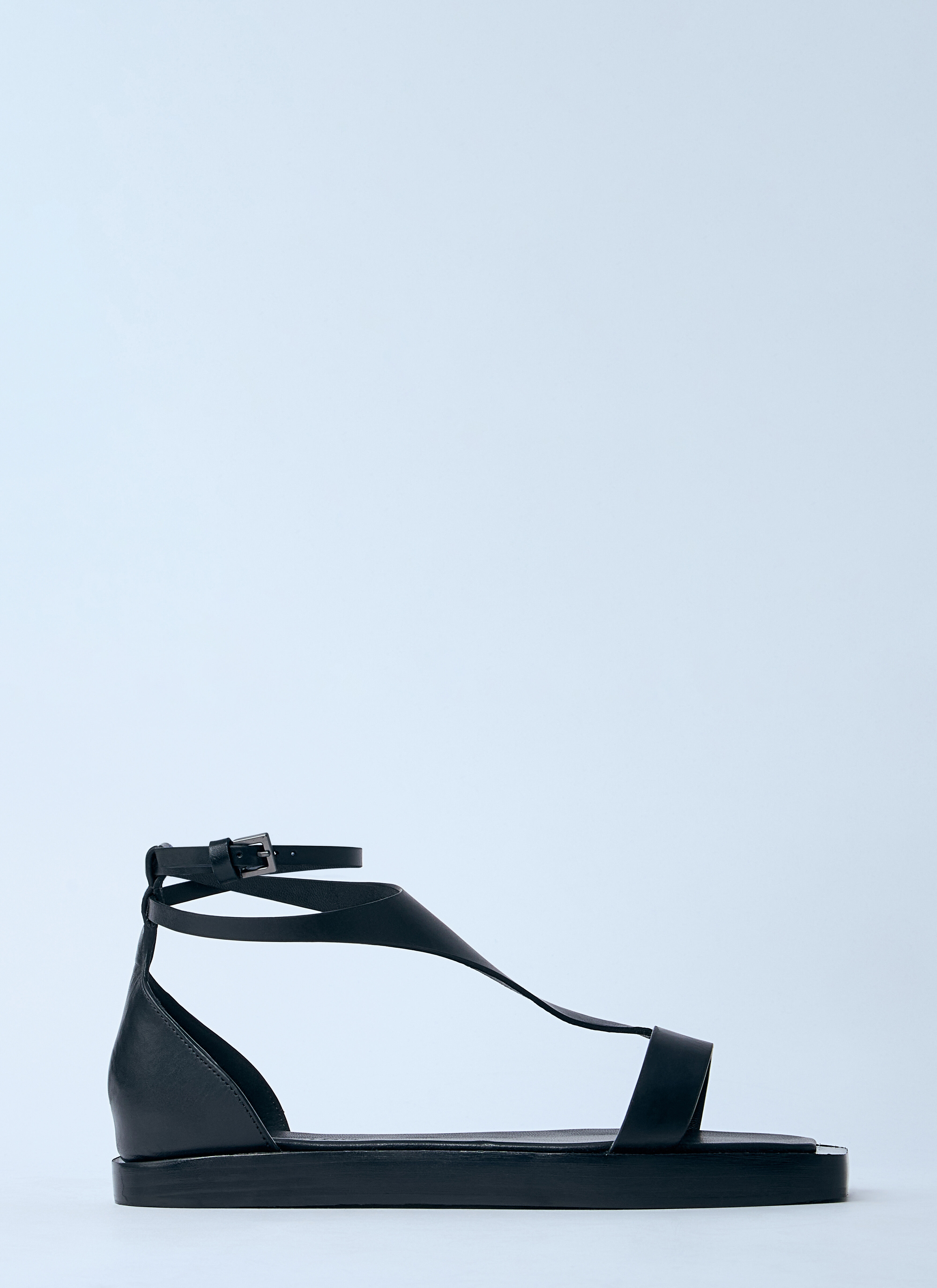 Leather sandals in smooth-grain finish - Open toe - Side buckle fastening - Flat sole - 100% Leather - Color: Black - Code: 2514521013600 004