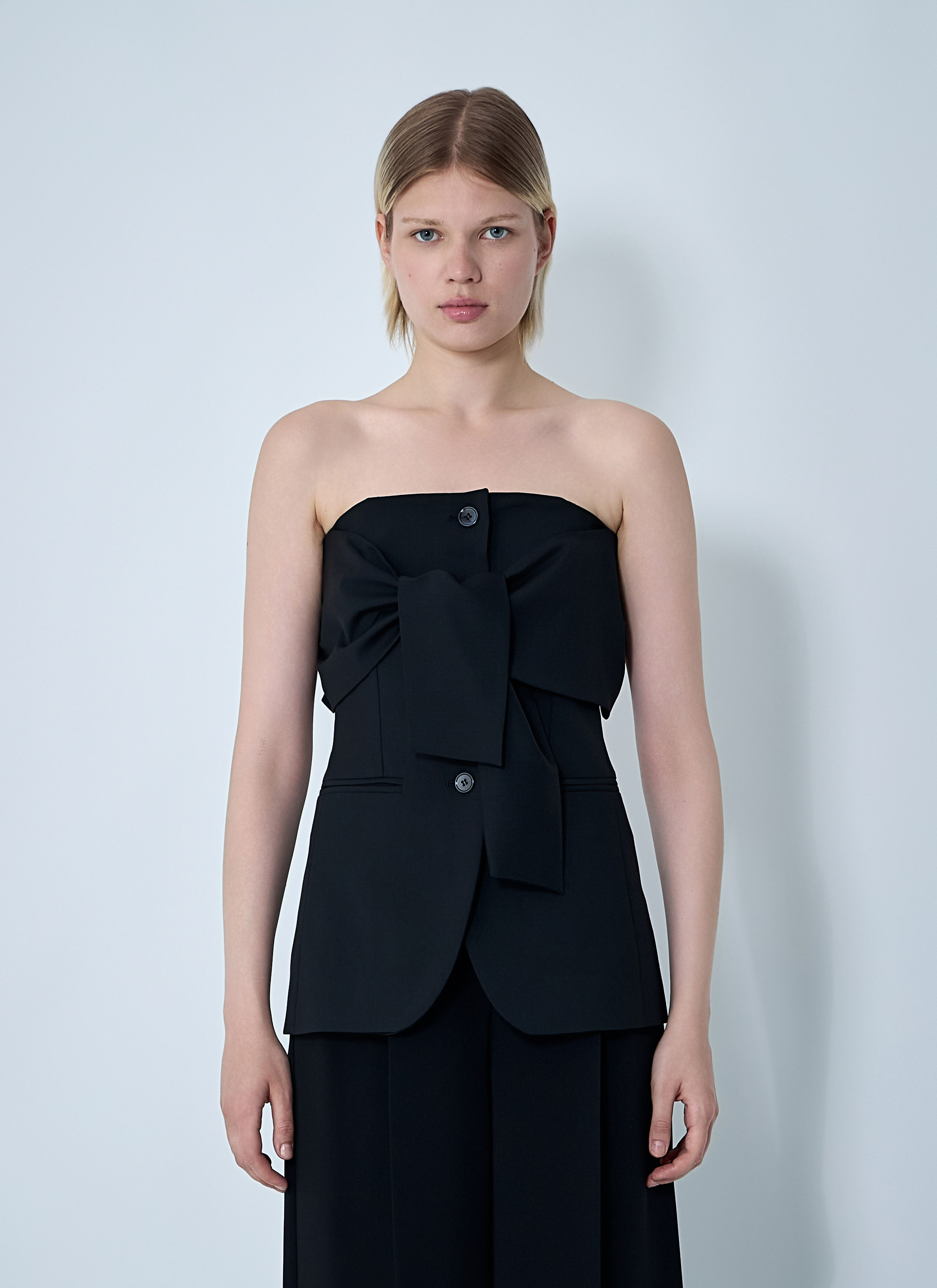 Tailored waistcoat in wool weave. - Straigh-neckline - Front button fastening - Front slip pockets - Rear adjustable strap - 100% Wool. Hand wash - Color: Black - Code: 1166031600 004