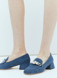 Denim pumps front crystal embellishment. - Square toe - Front crystal embellishment - Block heel - 100% Cotton - Color: Blue - Code: 5D947D W57 F0401