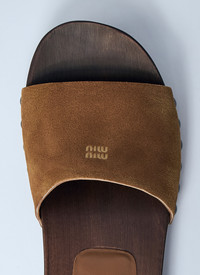 Faded suede clogs with front logo motif. - Open toe - Logo motif at front - Stud trim - 100% Leather - Color: Brown - Code: 5Z425E Z5O F0401