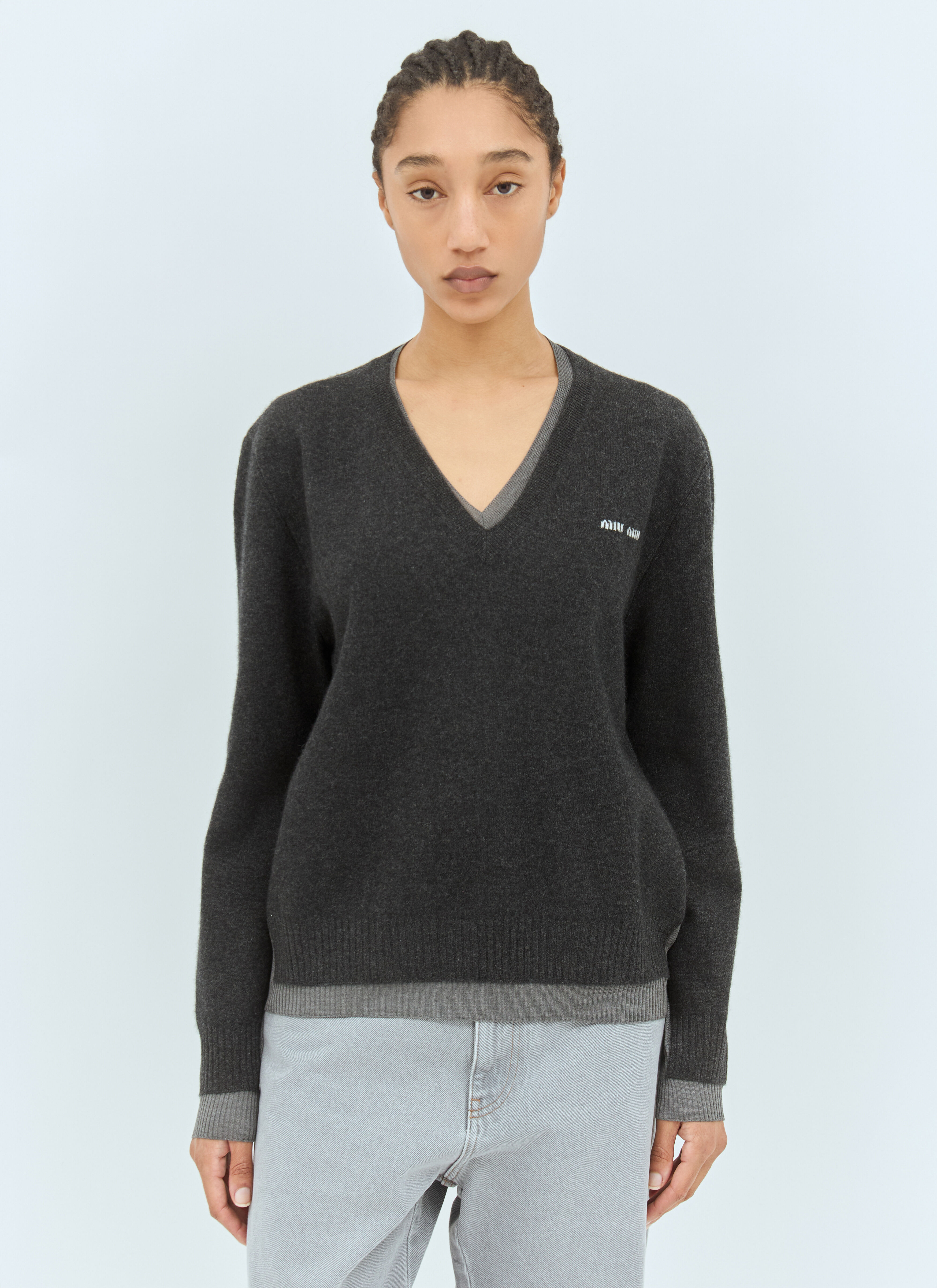 Wool sweater with double neckline construction. - V neck - Long sleeves - Chest logo embroidery - Rib trims - 100% Wool. Hand wash - Color: Grey - Code: MML994 15RK F0G55
