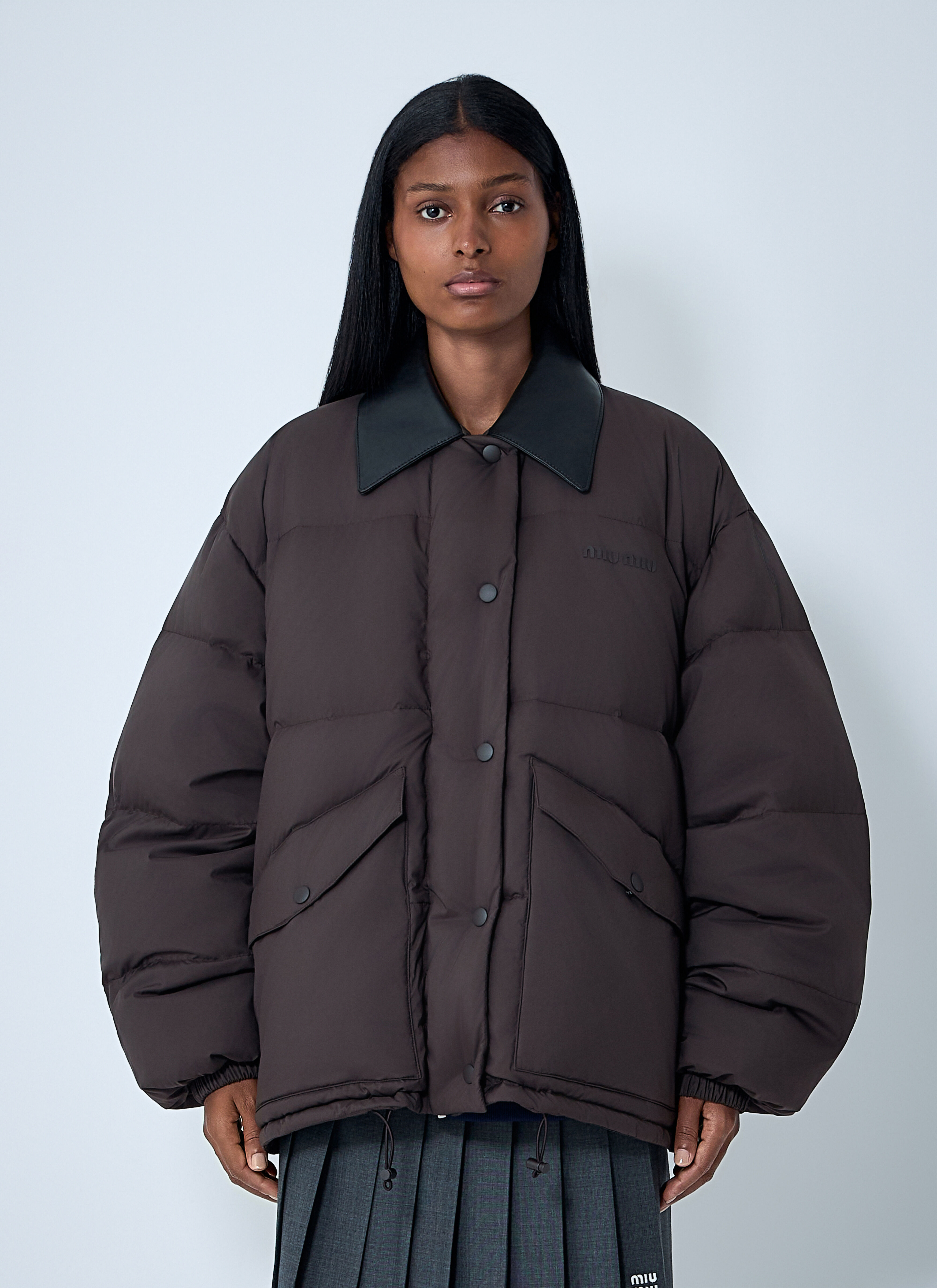 Down jacket with chest logo motif. - Classic collar - Front snap-button and zip fastening - Long sleeves - Chest logo motif - Side flap pockets - Drawstring hem - 100% Polyester. Dry clean - Color: Dark Brown - Code: ML1107 15WX F0192