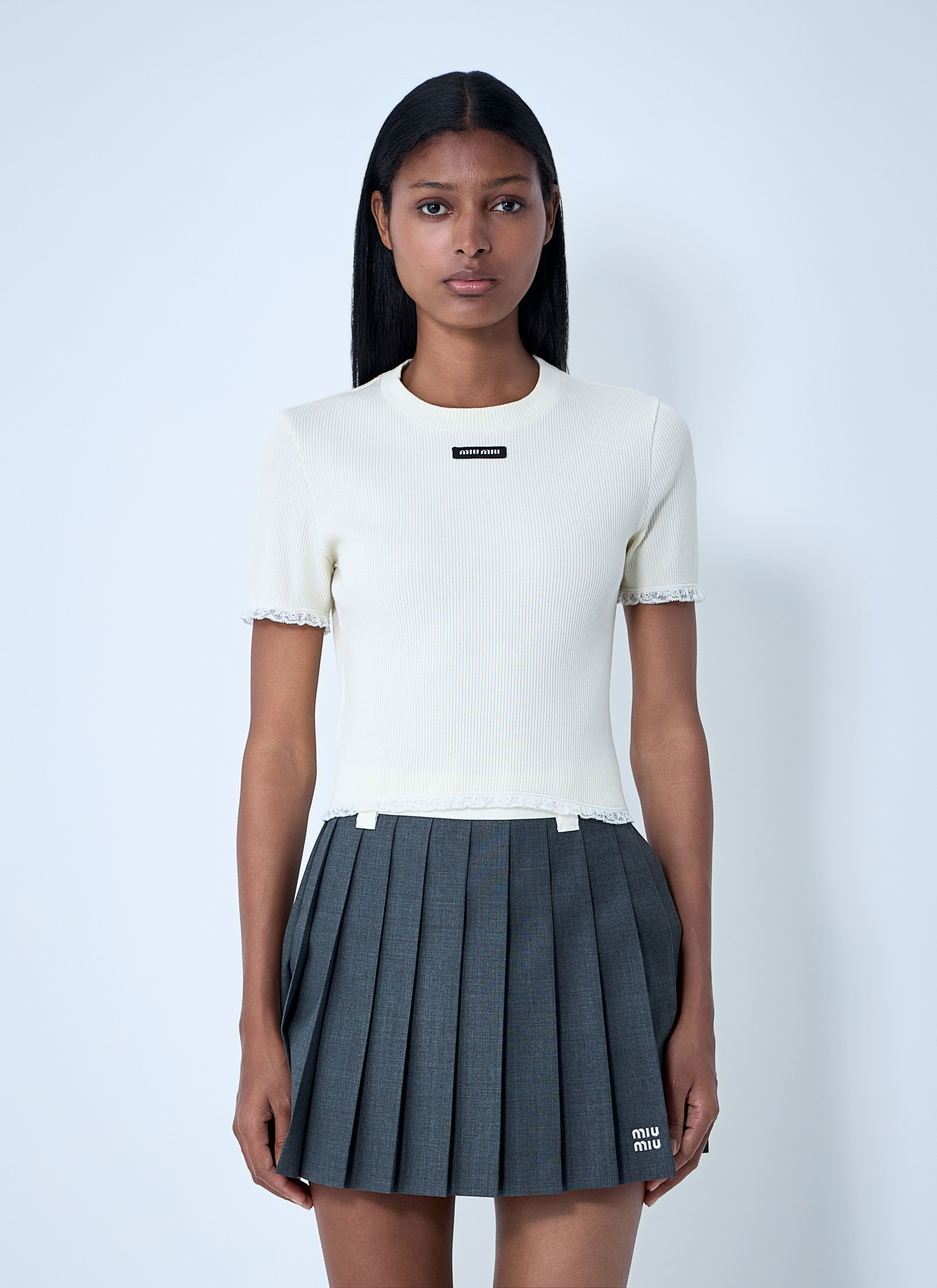 Logo motif T-shirt in cotton jersey. - Crewneck - Short sleeves - Front logo motif - 100% Cotton. Machine wash cold - Color: Beige - Code: MJN580 17Z9 F0304