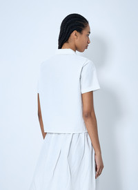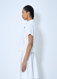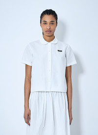 Short sleeve shirt with lace-trim collar. - Classic collar - Front button fastening - Short sleeves - Front logo patch - Straight hem - 80% Cotton, 20% Linen. Dry clean - Color: White - Code: MK1932 163M F0009