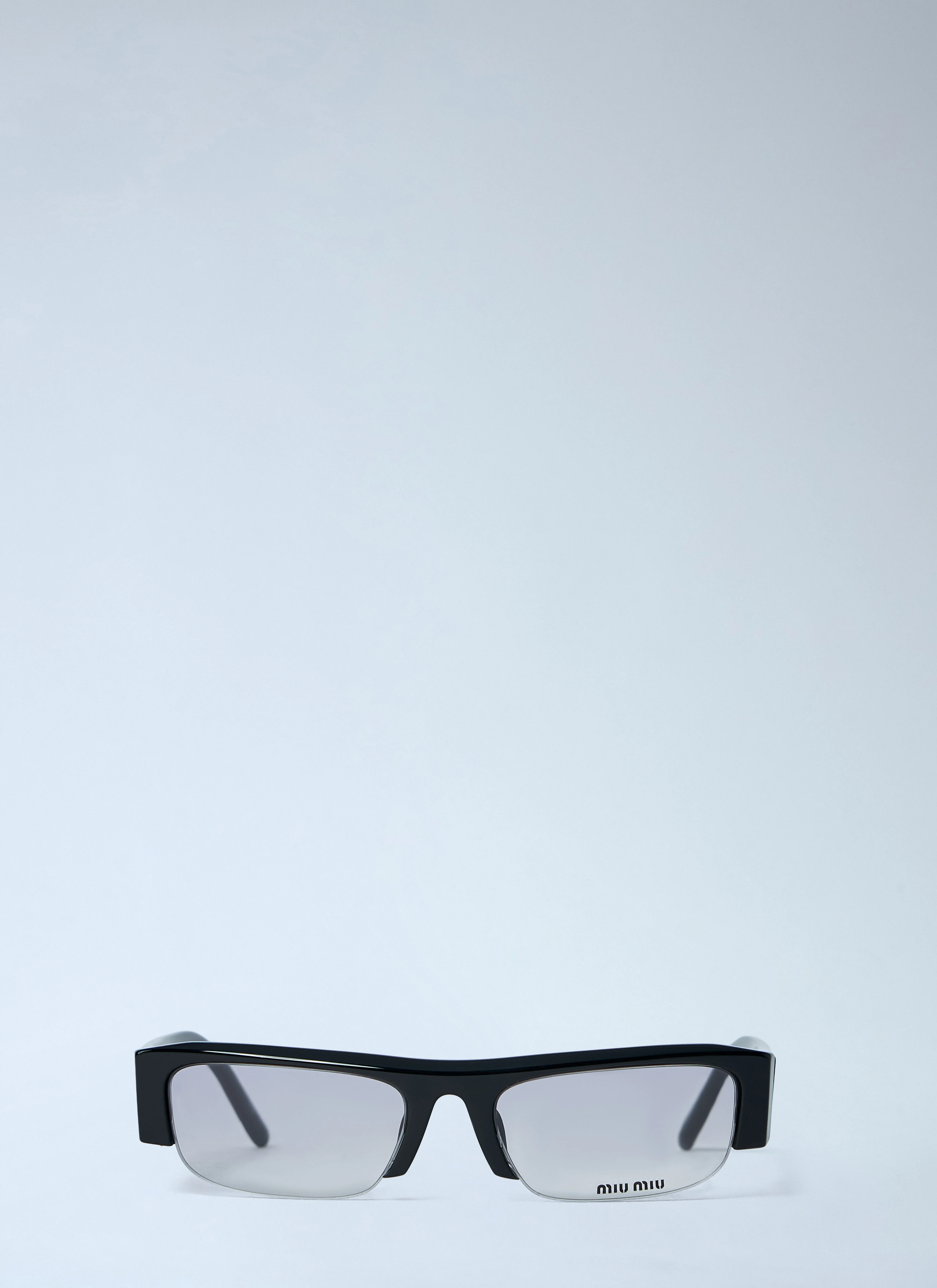 Rectangular sunglasses in glossy acetate frame. - Rectangular frame shape - Integrated nose pads - Subtle branding on lens - 100% Technical Fabrication Blend - Color: Black - Code: 0MU B07S 16K04O 51