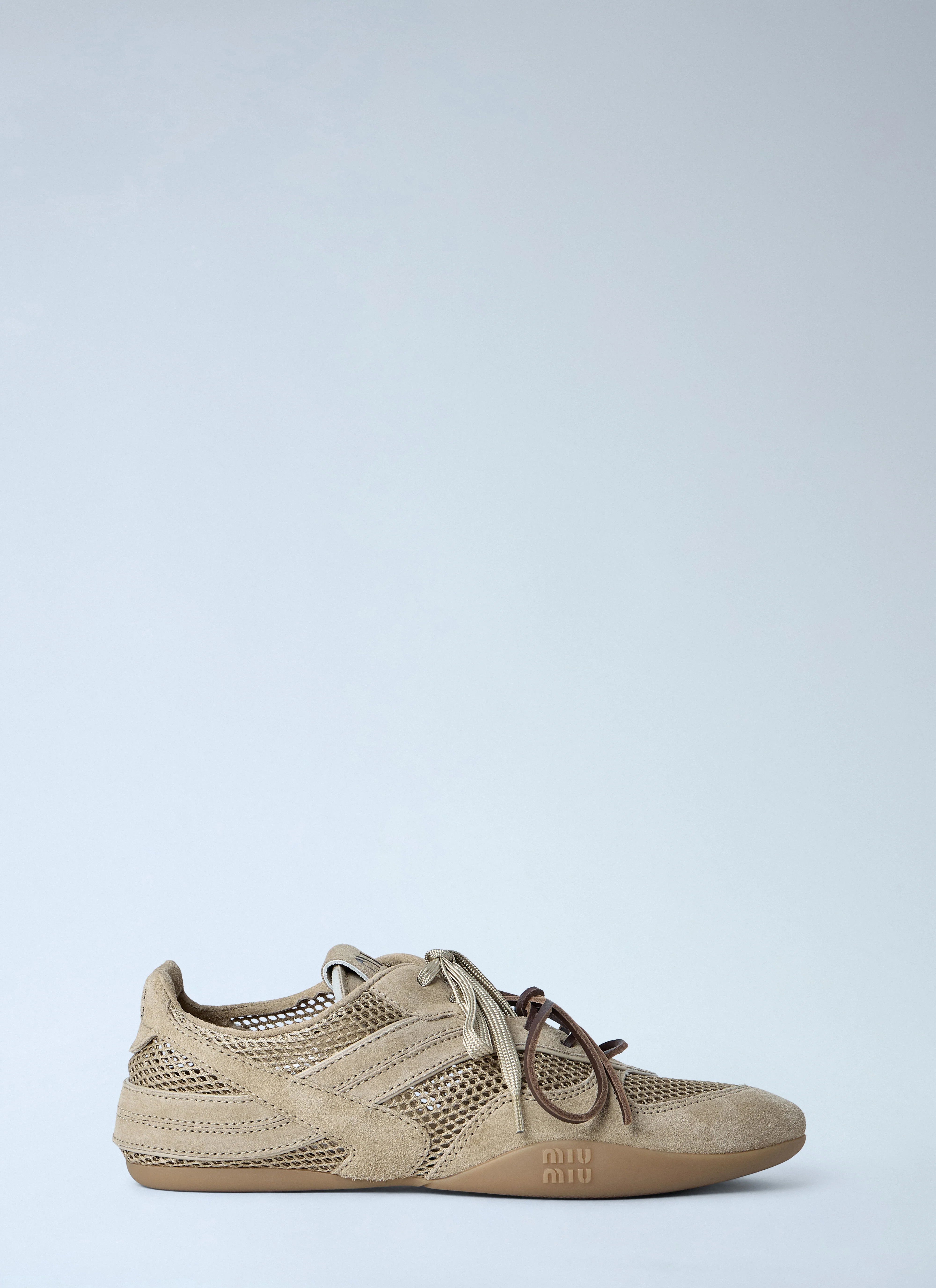 Mesh sneakers with suede panel accents. - Round toe - Lace-up fastening - Rubber sole - 100% Polyester, 100% Leather - Color: Beige - Code: 5E589E 3KU1 F0F24
