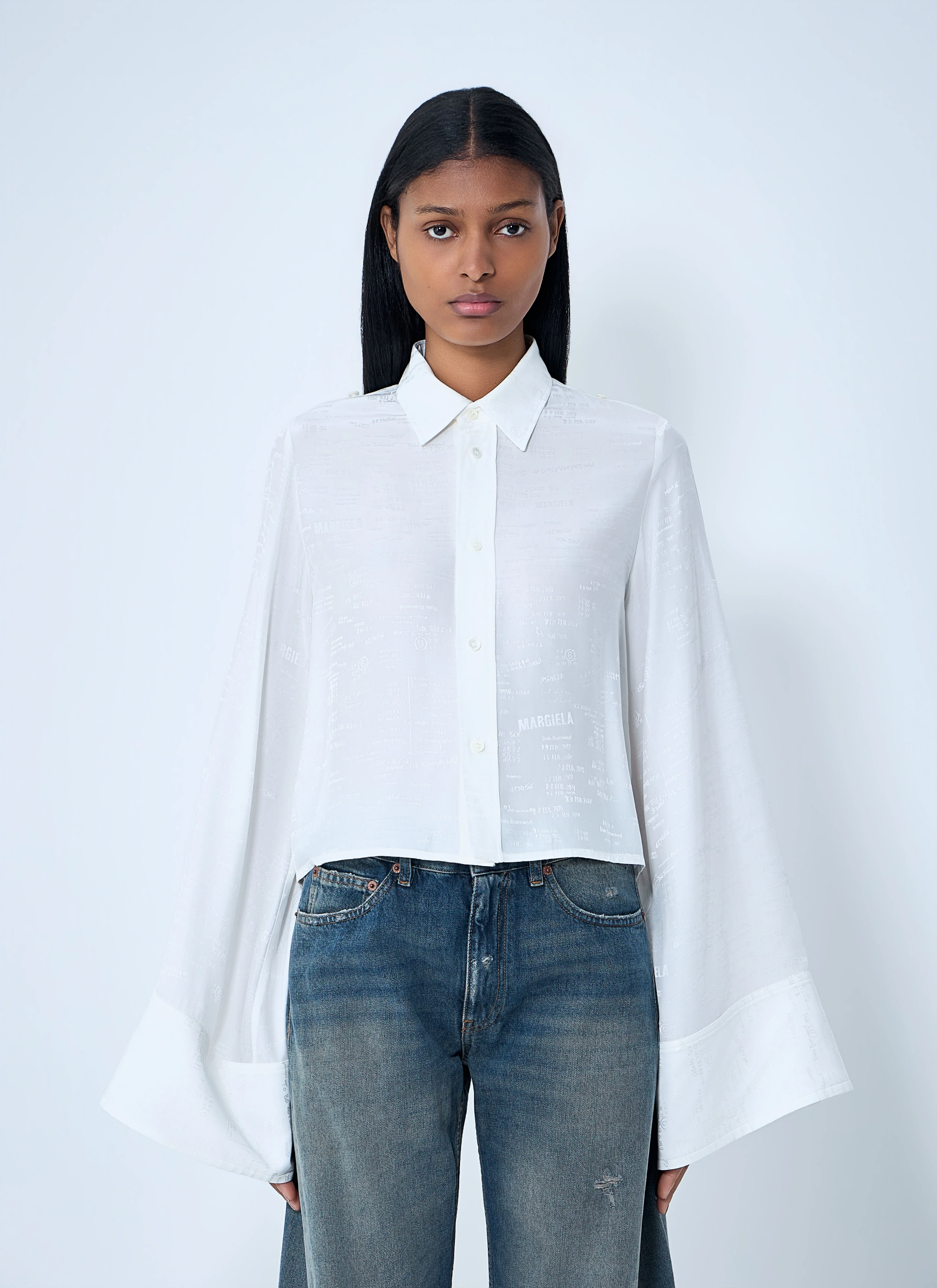 Button-Down Shirt With Long Flared Sleeves