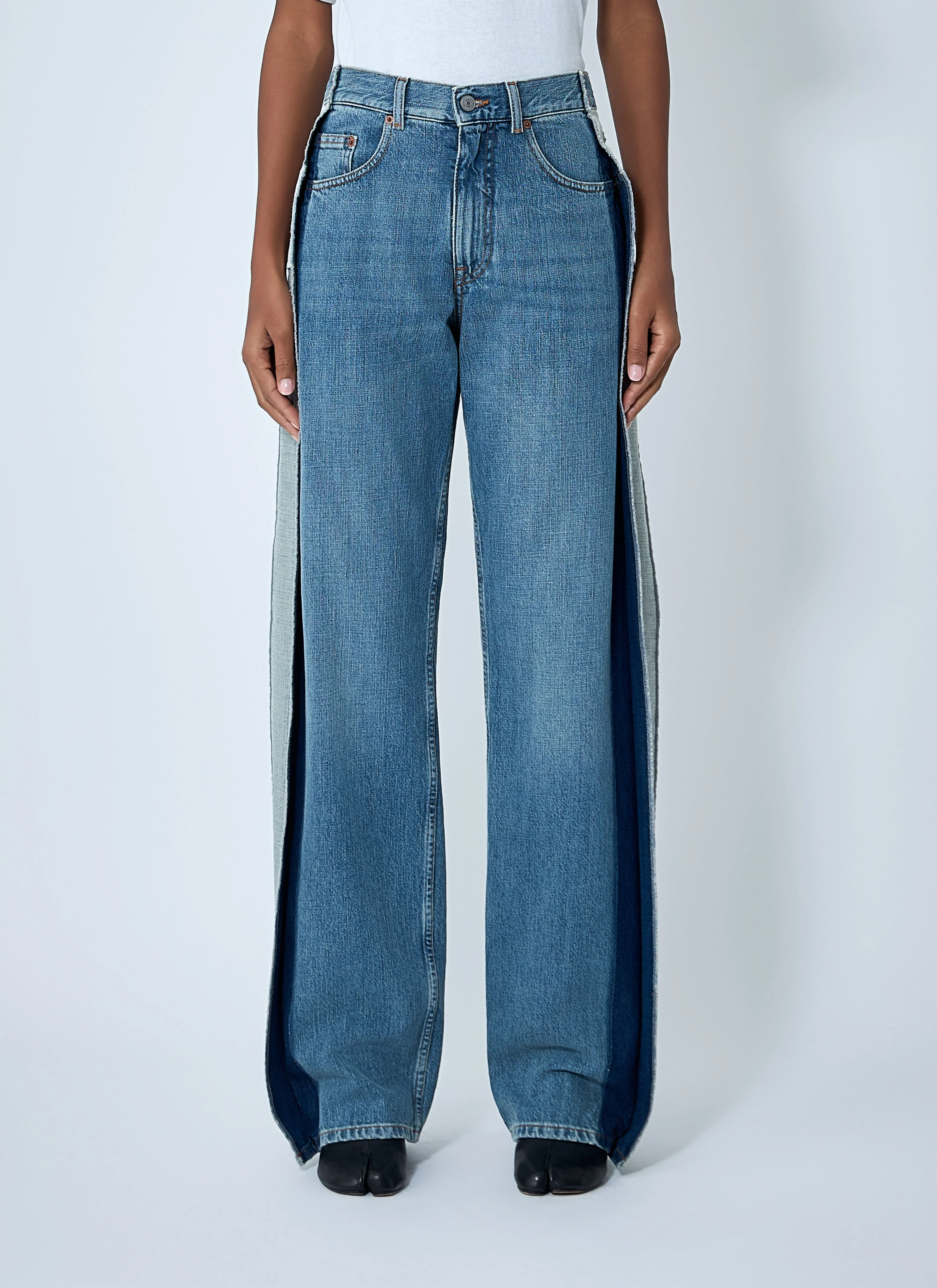 Wide-leg jeans with side panel construction. - Mid rise - Top-button and zip-fly fastening - Side panel detailing - 100% Cotton. Dry clean - Color: Blue - Code: S62LB0200 S30844 966