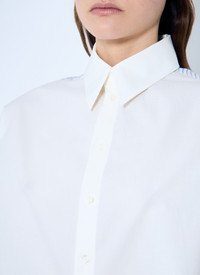 Long sleeve shirt with contrast panels. - Classic collar - Front button fastening - Long sleeves - Button fastening cuffs - Dip hem - Contrast panels - 100% Cotton. Dry clean - Color: White - Code: S52DT0042 M35256 101