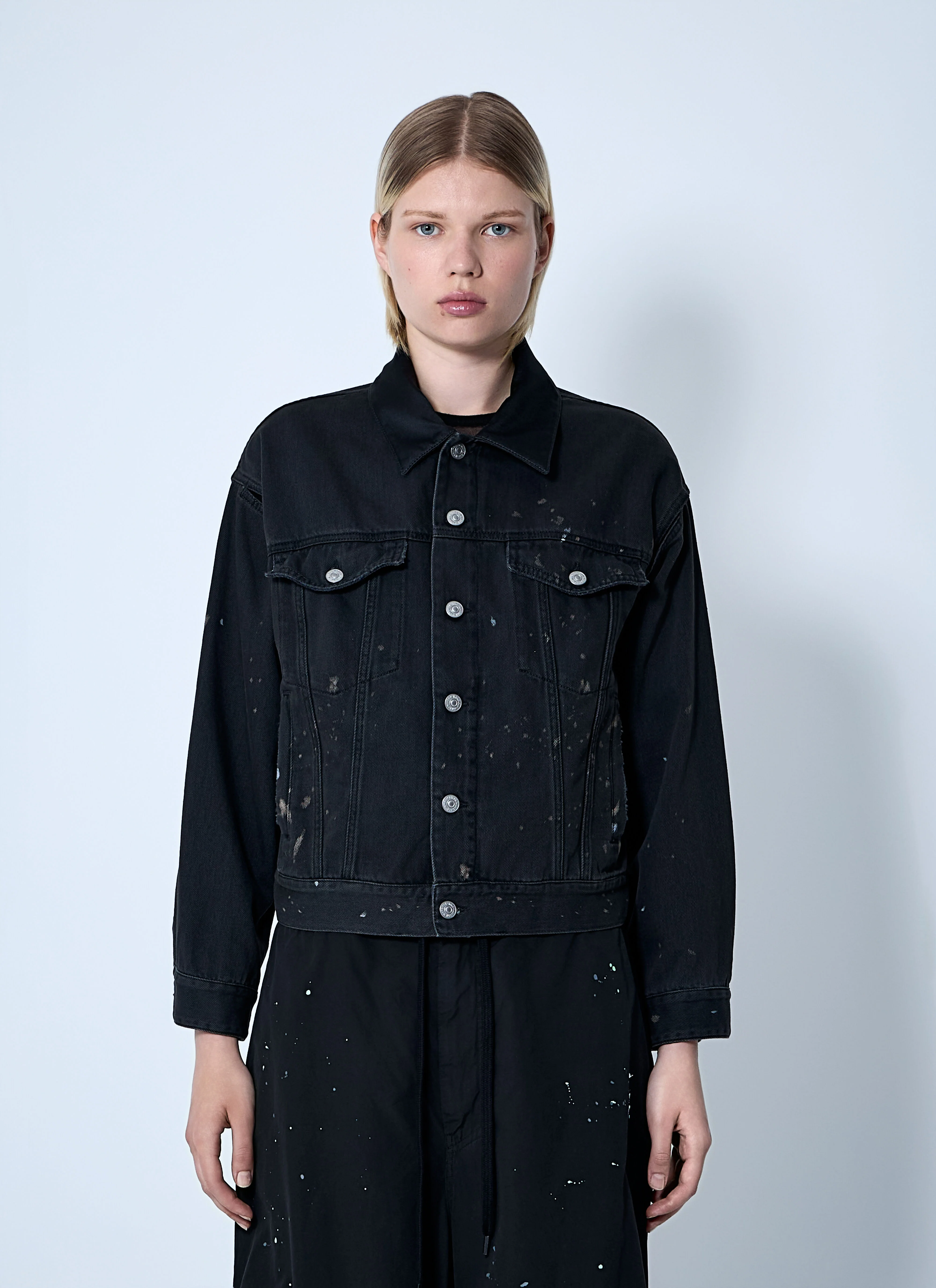 Classic collar in a distress finish. - Classic collar - Front button fastening - Long sleeves - Front flap pockets - Button-fastening cuffs - 100% Cotton. Dry clean - Color: Black - Code: S62AN0150 M30011 963