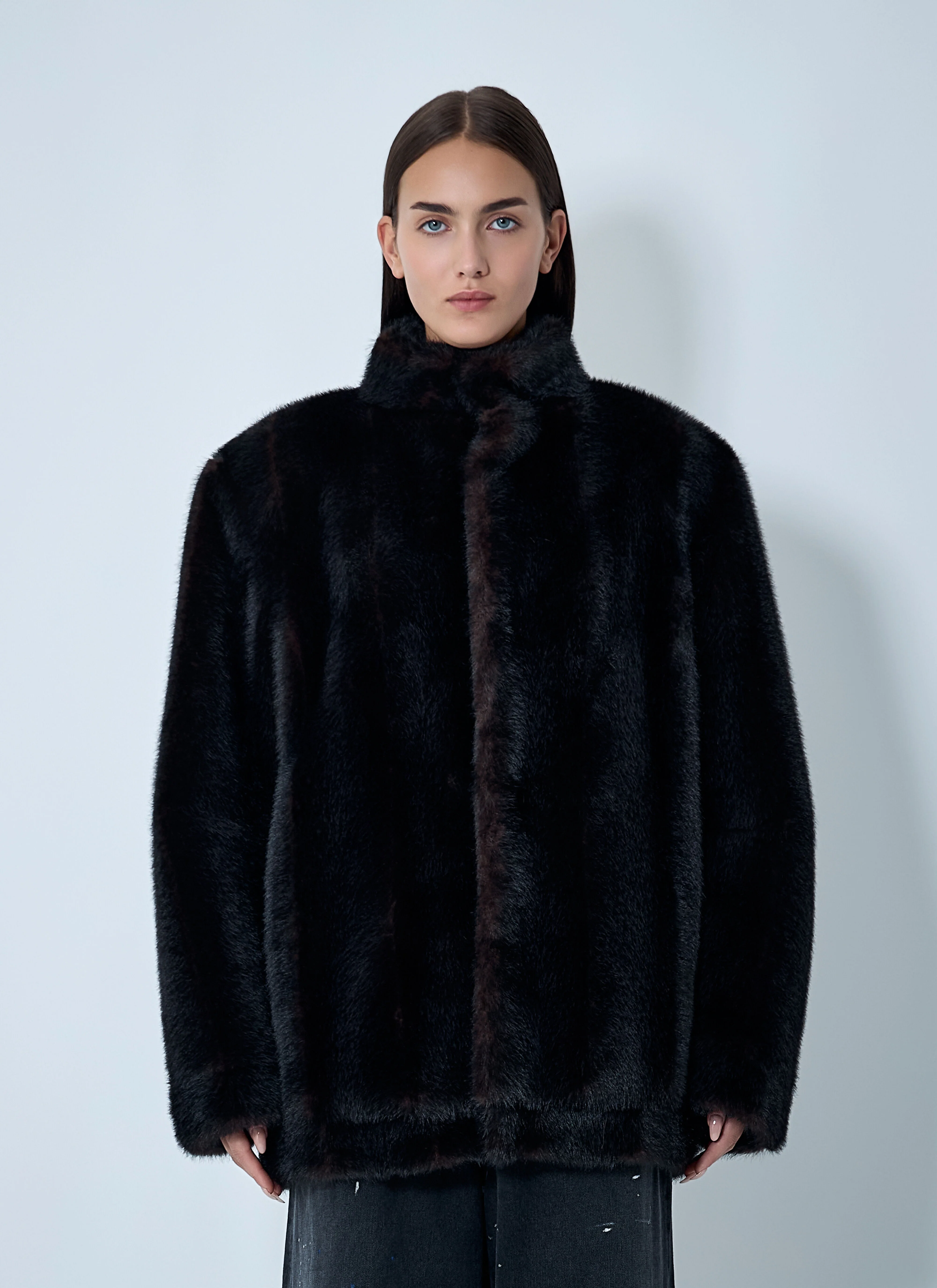 Straight-cut faux fur jacket that offsets plush texture with clean construction. - Stand collar - Front button fastening - Long sleeves - Patch pockets - 100% Polyester. Specialist dry clean - Color: Brown - Code: S62AN0151 M35637 143