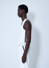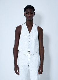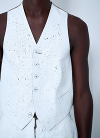 Tailored vest with front handpainted finish. - V neck - Front button fastening - Adjustable strap at rear - 54% Polyester, 44% Wool, 2% Elastane. Dry clean - Color: White - Code: SH2FB0008 M35437 002F
