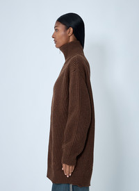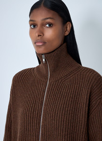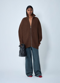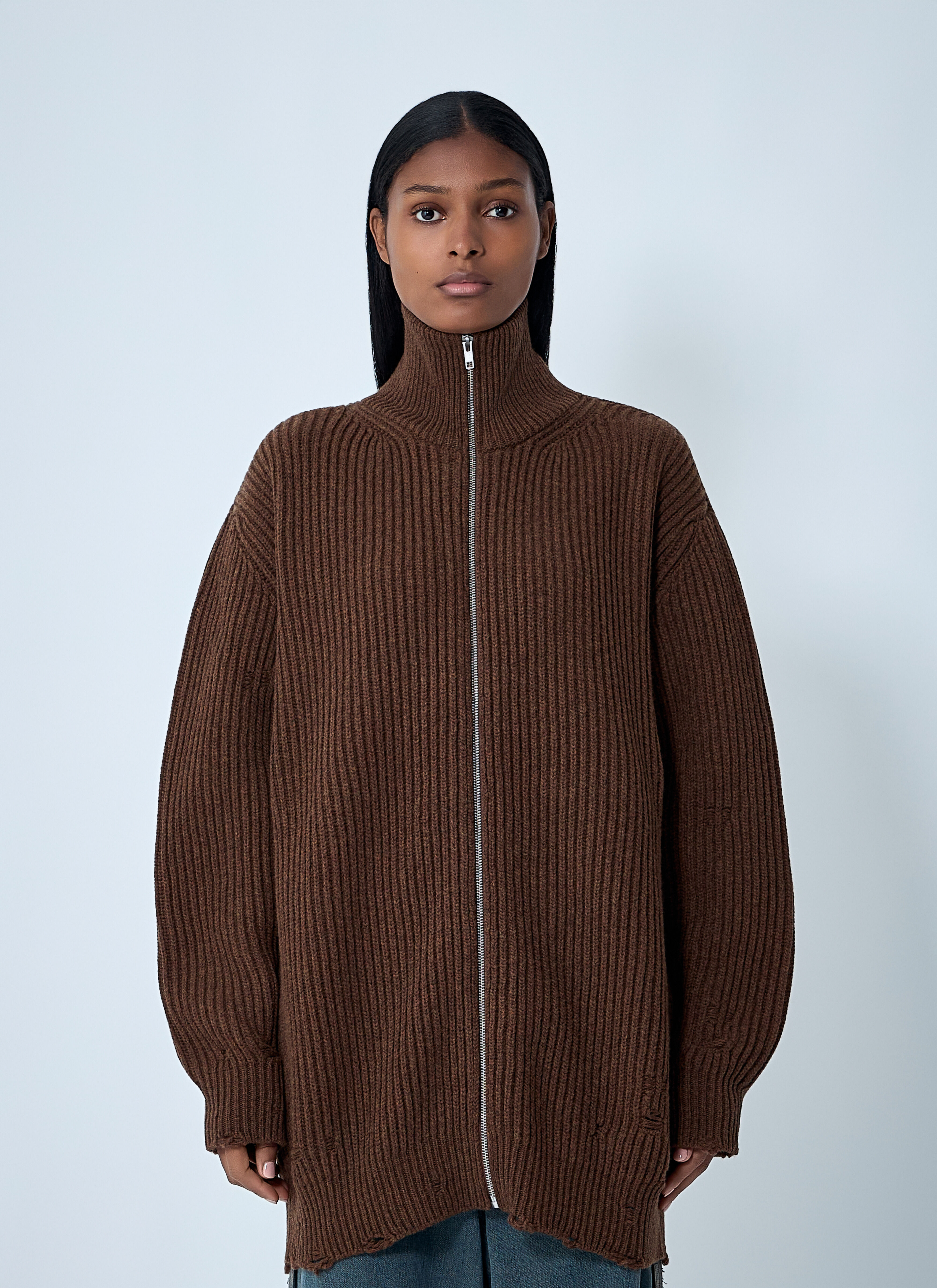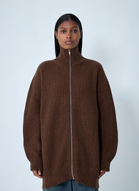 Distressed rib knit jacket in wool-blend. - Stand collar - Front zip fastening - Long sleeves - 80% Wool, 20% Polyamide. Hand wash - Color: Brown - Code: S52AM0322 M13138 142M