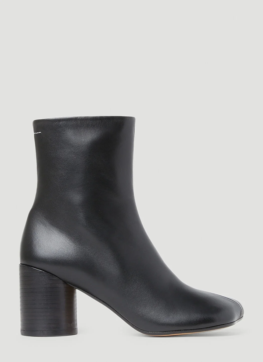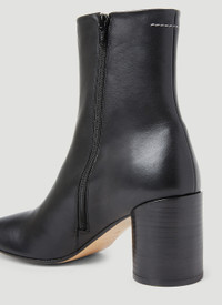 Leather ankle boots with square toe. - Square toe - Side zip fastening - Stacked heel - Signature logo stitch - 100% Leather - Color: Black - Code: S59WU0235 P3628 T8013