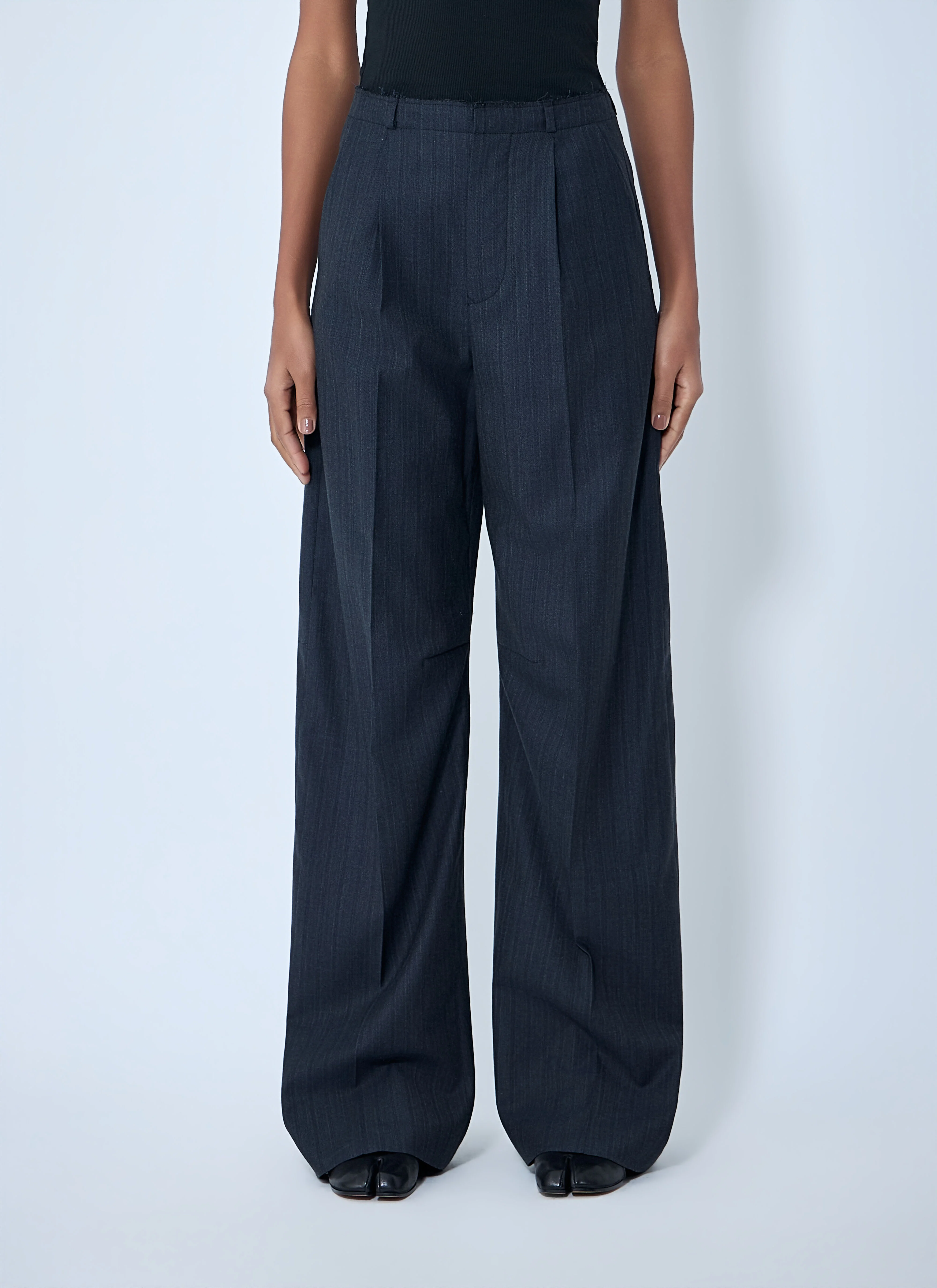 Wide-leg pants in structured fabric with belt loops. - High rise - Hook-and-eye and zip fastening - Front pleats - 60% Wool, 40% Cotton. Dry clean - Color: Black - Code: S52KA0555 M35743 001F