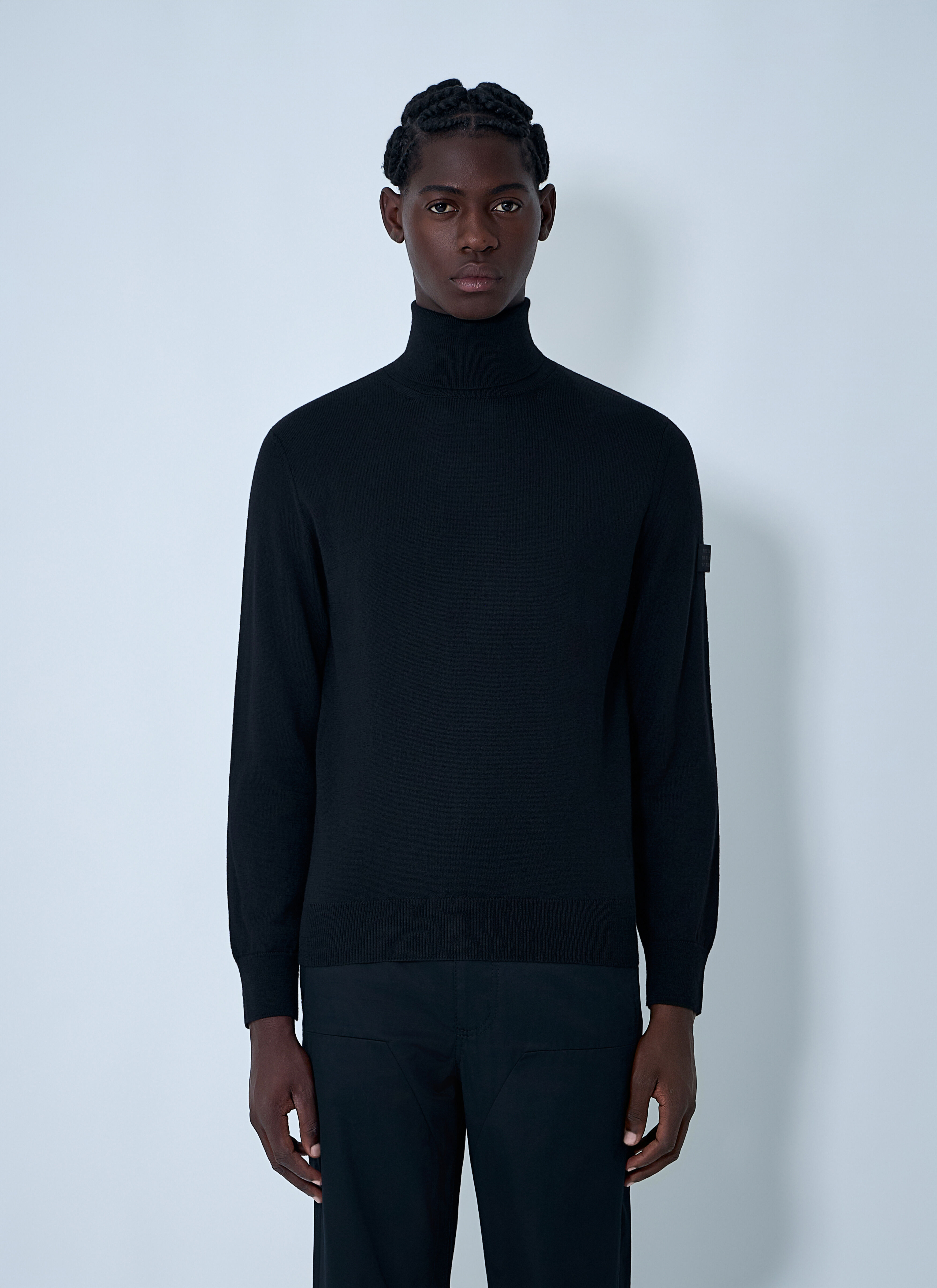 Wool-blend sweater with side logo patch. - Highneck - Long sleeves - Rib trims - 50% Wool, 50% Acrylic. Dry clean - Color: Black - Code: SH2HA0014 M13172 900