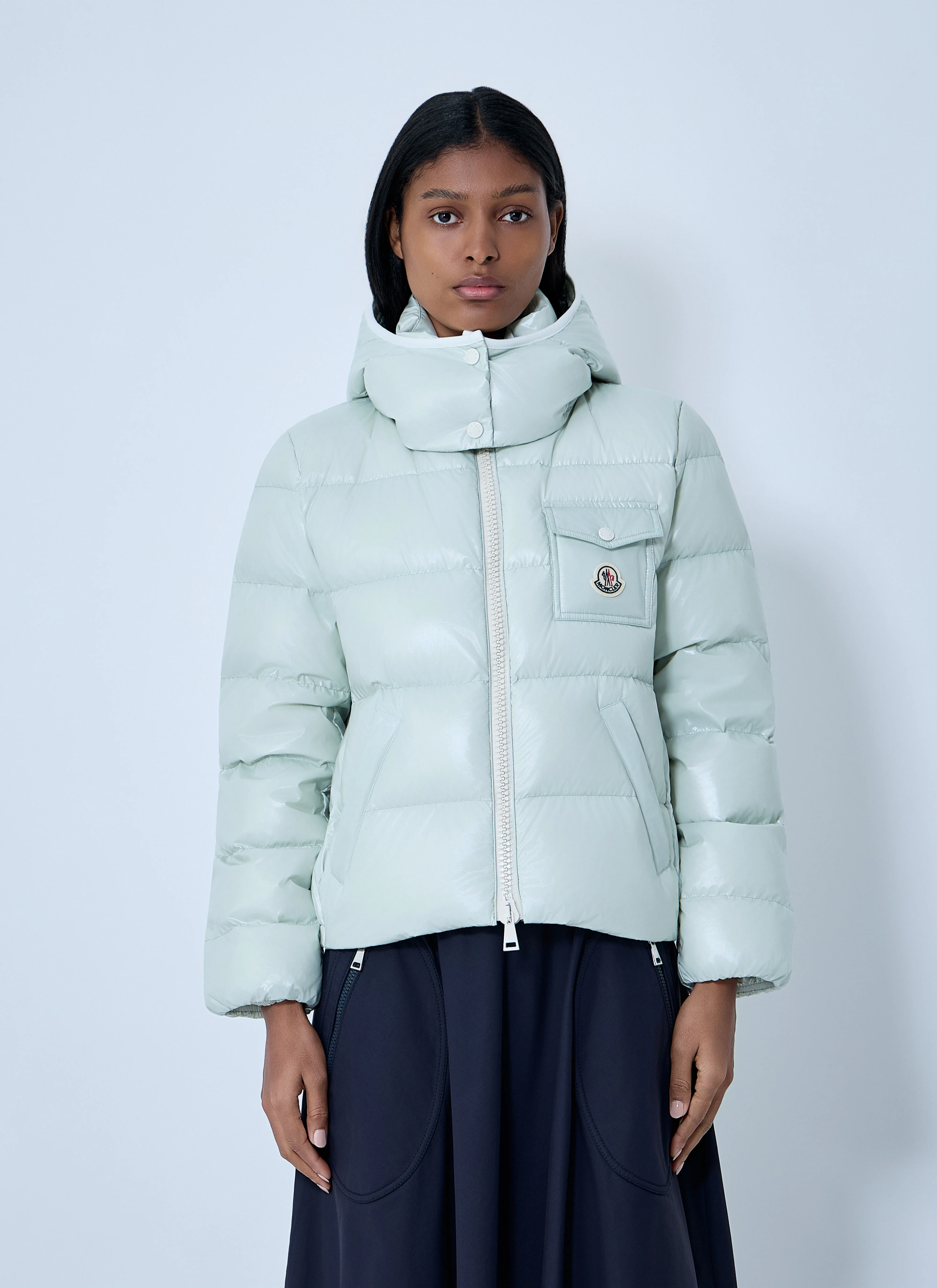 Puffer jacket with quilted construction and high-neck collar. - Front zip fastening - Chest pocket with flap - Elasticated cuffs - 100% Technical Fabrication Blend. Fill: 90% Down, 10% Feather. Dry clean - Color: Green - Code: L1093 1A00094 597EU 80S
