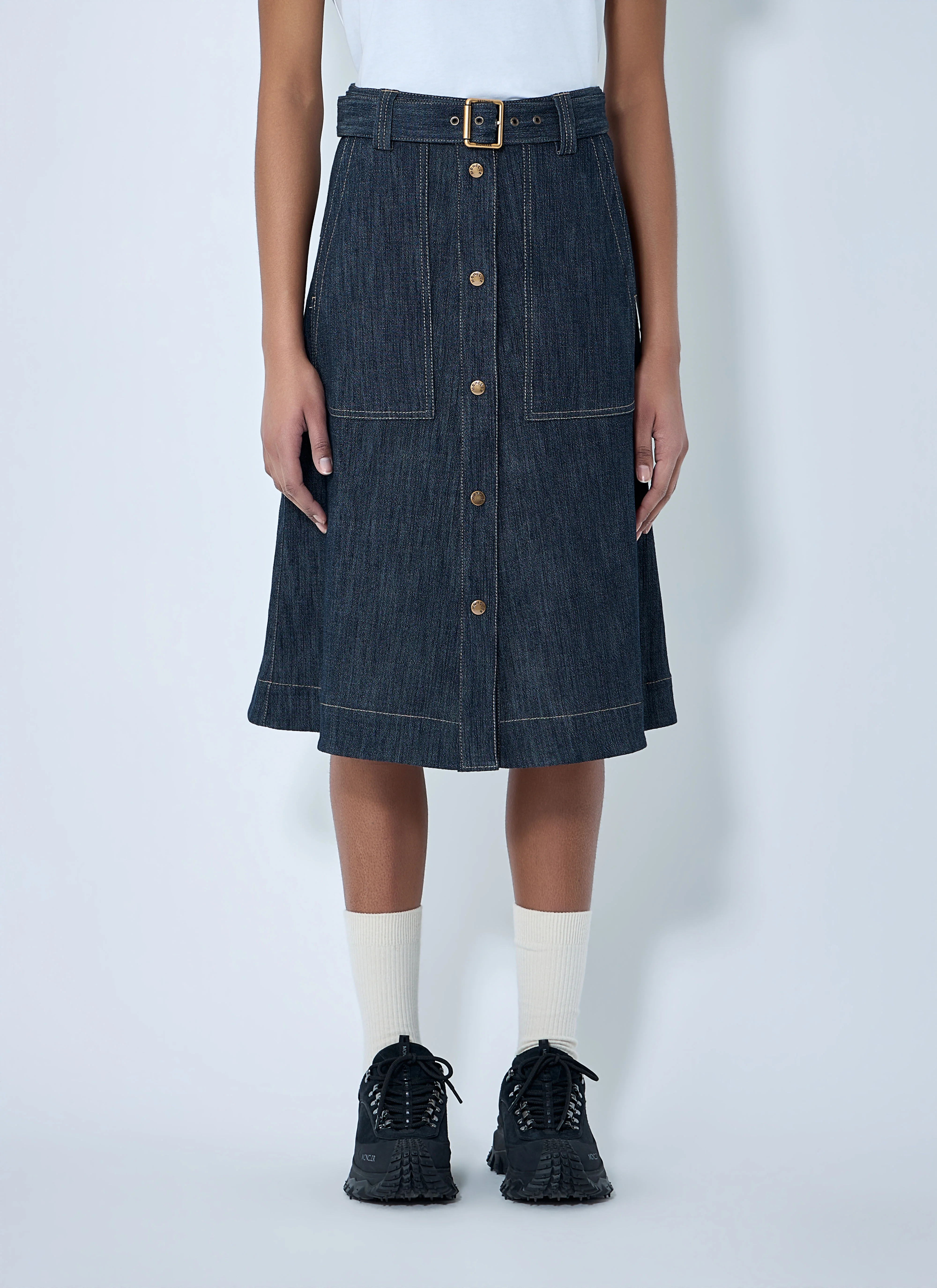 Button-Front Denim Midi Skirt