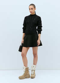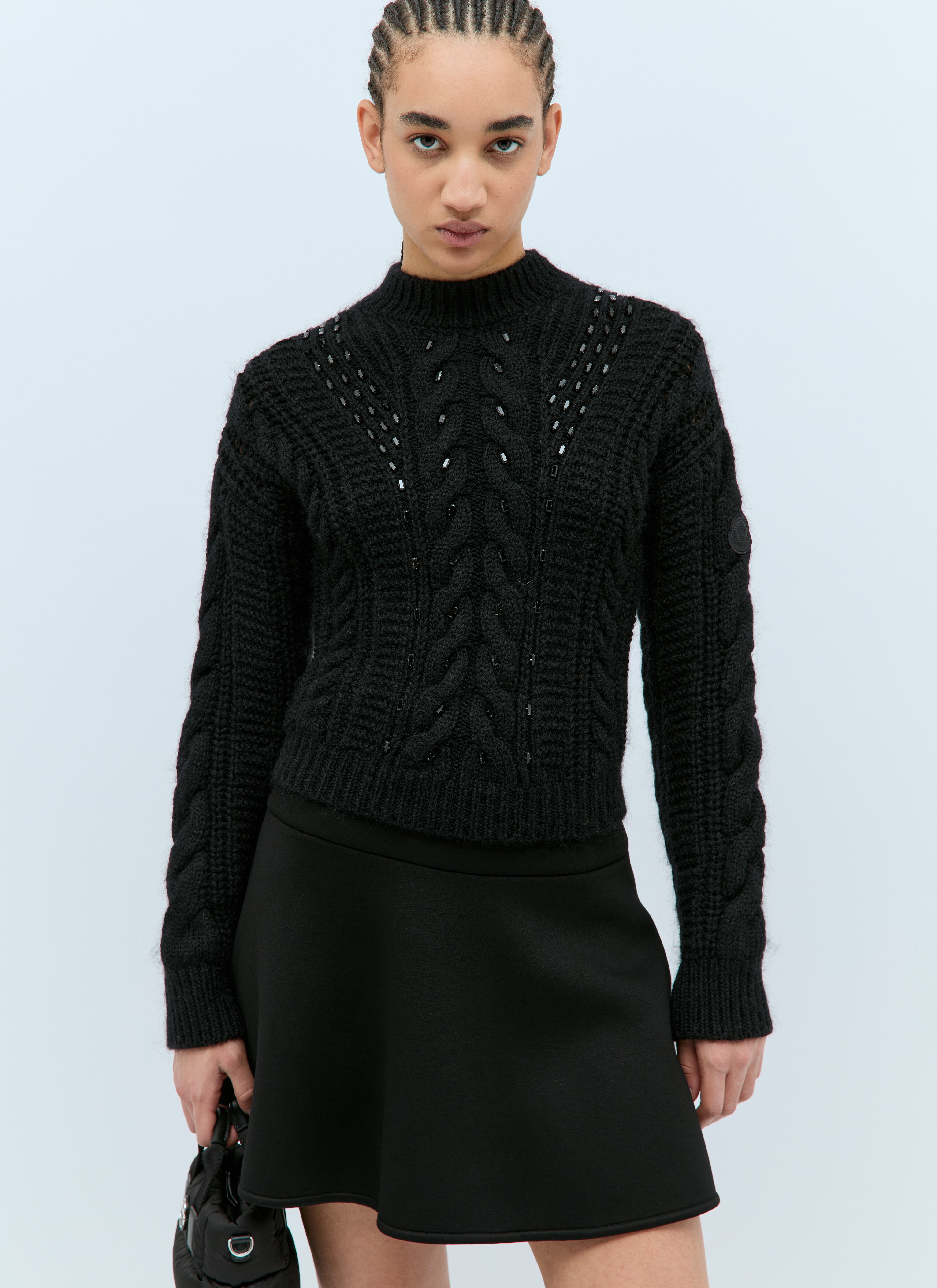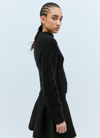 High-neck sweater in wool-blend cable knit. - High-neck - Long sleeves - Logo patch at sleeve - Ribbed trims - 89% Wool, 6% Mohair, 5% Polyamide. Dry clean - Color: Black - Code: J2093 9F00023 - M4910 999