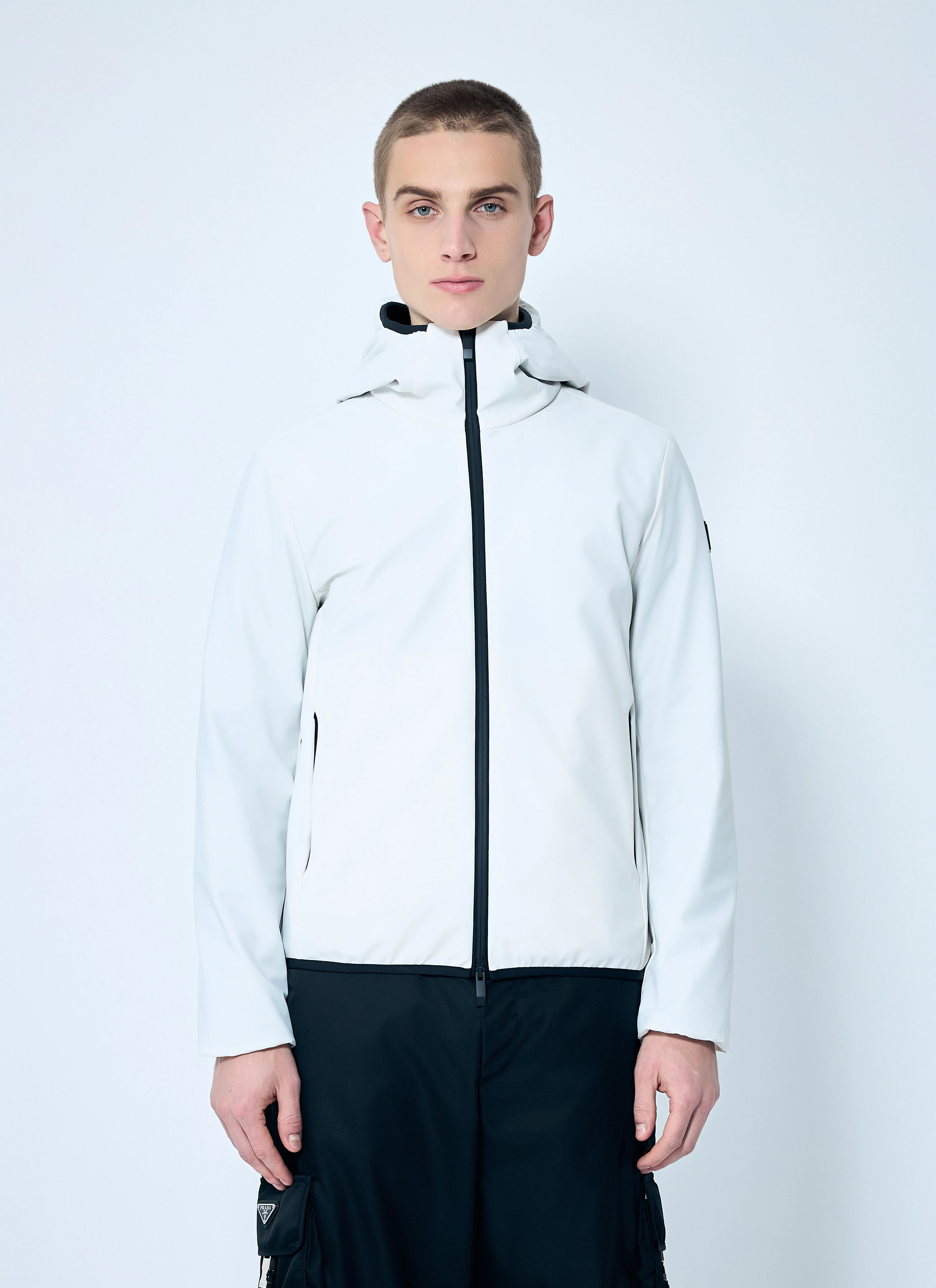Chalves down jacket in matte finish with contrast trims. - Hood - Front zip fastening - Long sleeves - Logo patch at sleeve - Side zip pockets - Elasticated trims - 80% Polyamide, 25% Elastane. Fill: 90% Down, 10% Feather. Hand wash - Color: White - Code: 1A00006 539DK 034