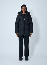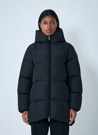 Short down jacket with side logo motif. - Hood - Front zip fastening - Long sleeves - Side logo motif - Side zip pockets - Quilted padding - 100% Polyester. Fill: 90% Down, 10% Feathers. Dry clean - Color: Black - Code: 1A00162 598HW 999