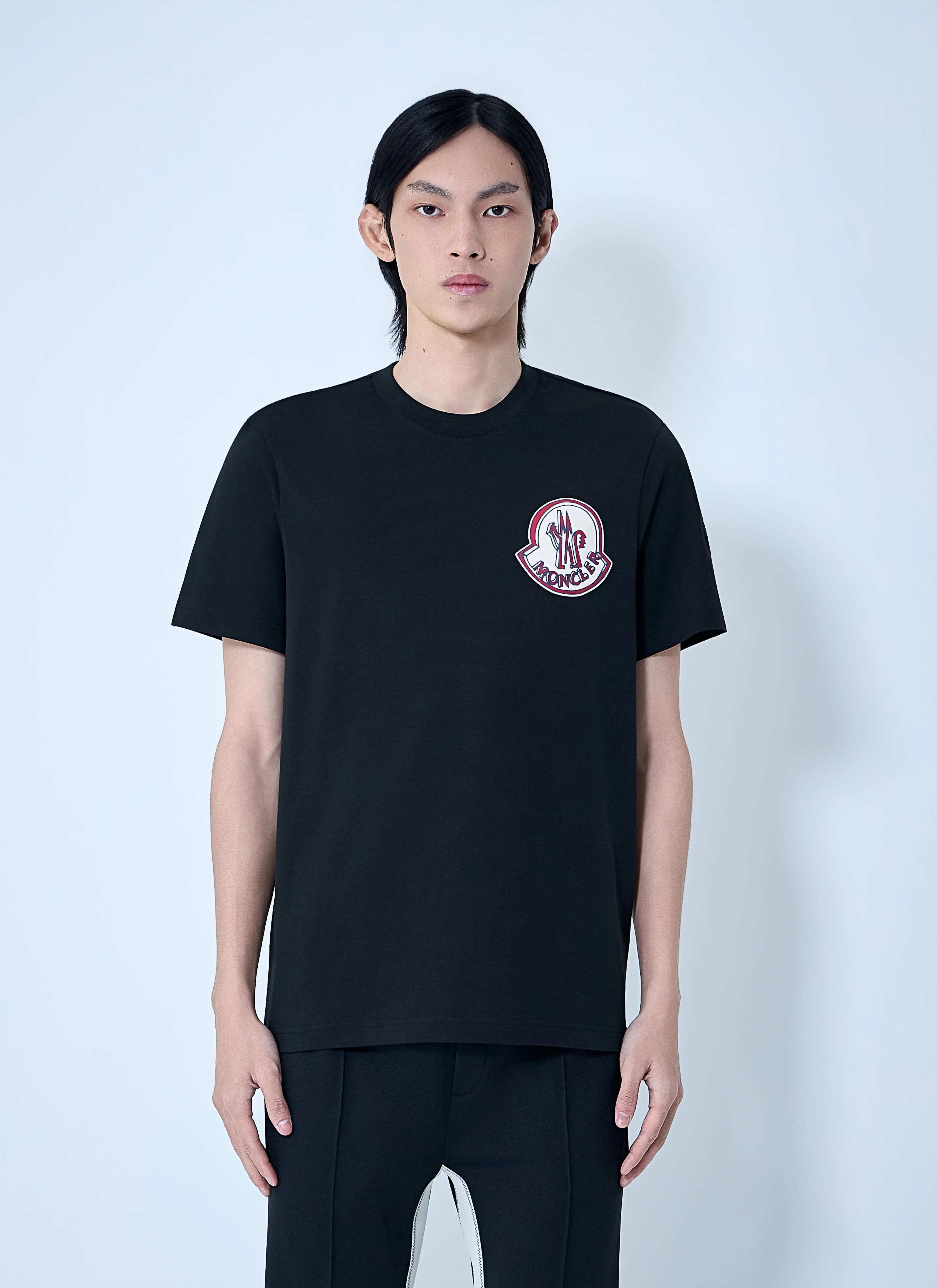 Logo motif T-shirt in cotton jersey. - Crewneck - Short sleeves - Front embroidered logo motif - Straight hem - 100% Cotton - Color: Black - Code: L1091 8C00034 89B8U 999