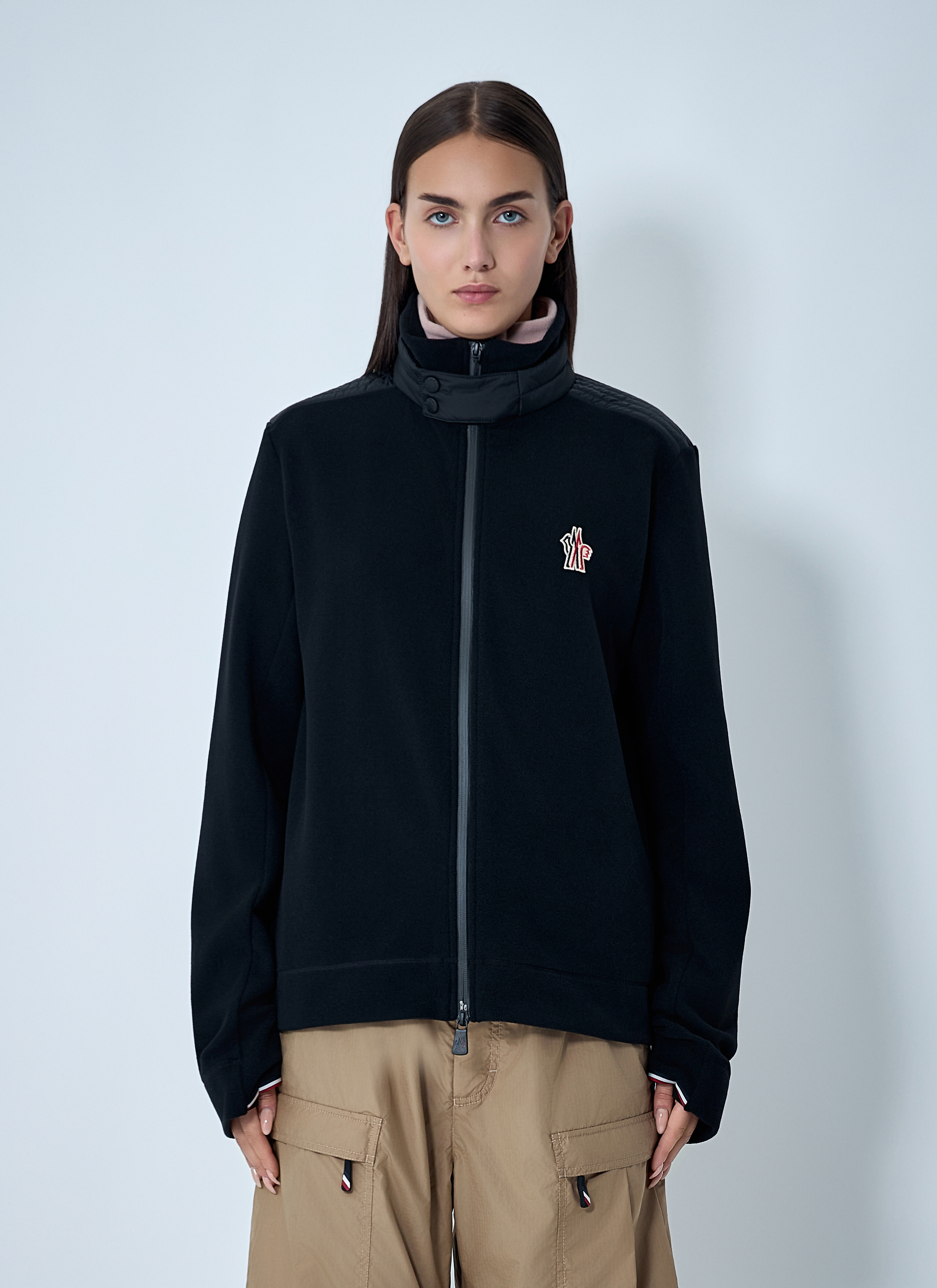Fleece jacket with quilted detailing. - Stand collar - Top-sna-button and zip fastening - Long sleeves - Front logo patch - Side zip pockets - 100% Technical Fabrication Blend. Dry clean - Color: Black - Code: 8G00024 80093 999