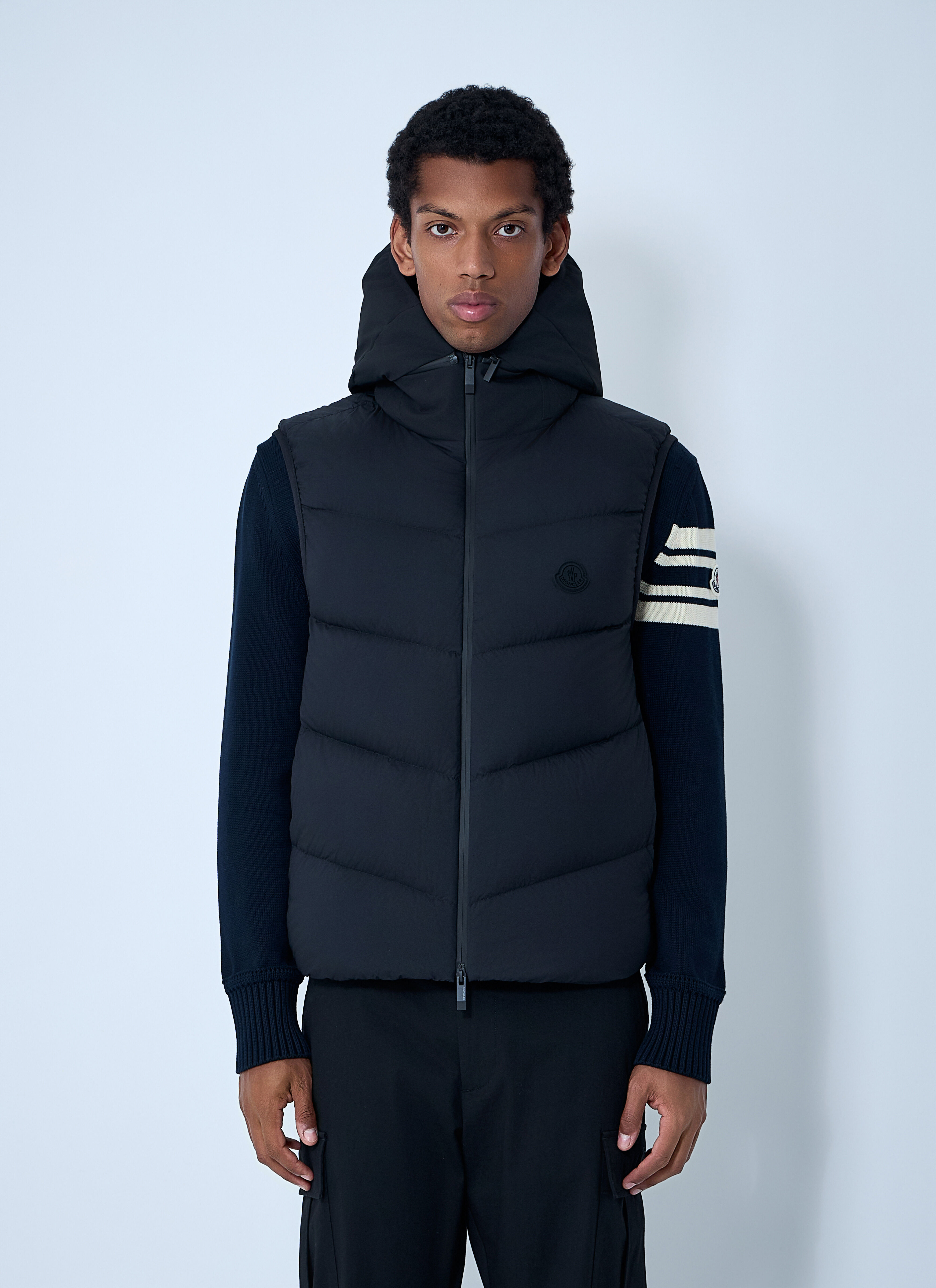Hooded Guersace gilet with diagonal quilted. - Hood - Front zip fastening - Front logo motif - Side slip pockets - 100% Polyester. Fill: 80% Down, 20% Feather. Dry clean - Color: Black - Code: 1A00042 597YD 999
