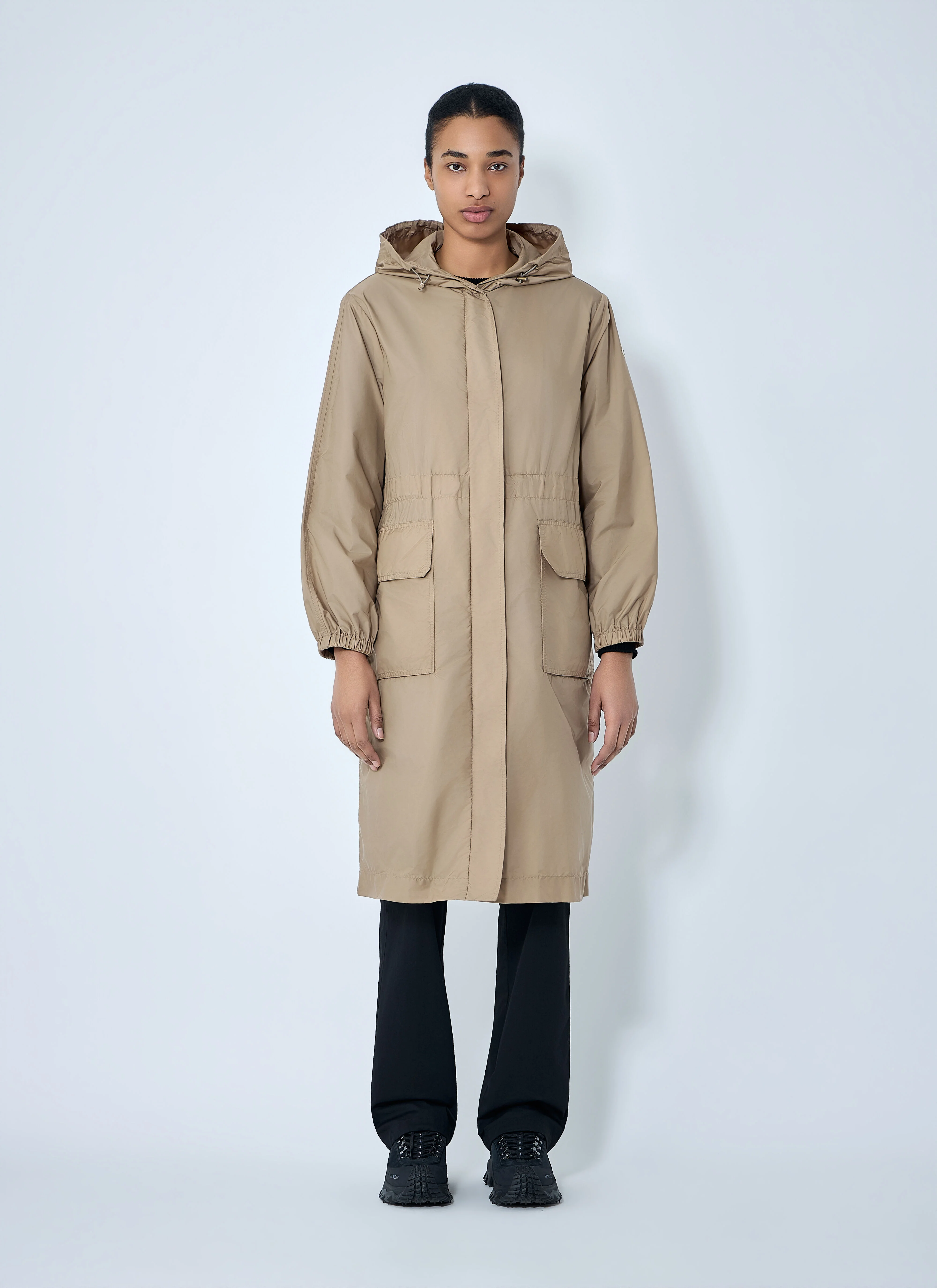 Hooded parka coat in lightweight nylon construction. - Elasticated cuffs - Front flap pockets - Drawstring hood - 100% Polyamide - Color: Beige - Code: L1093 1C00018 53A5E 236