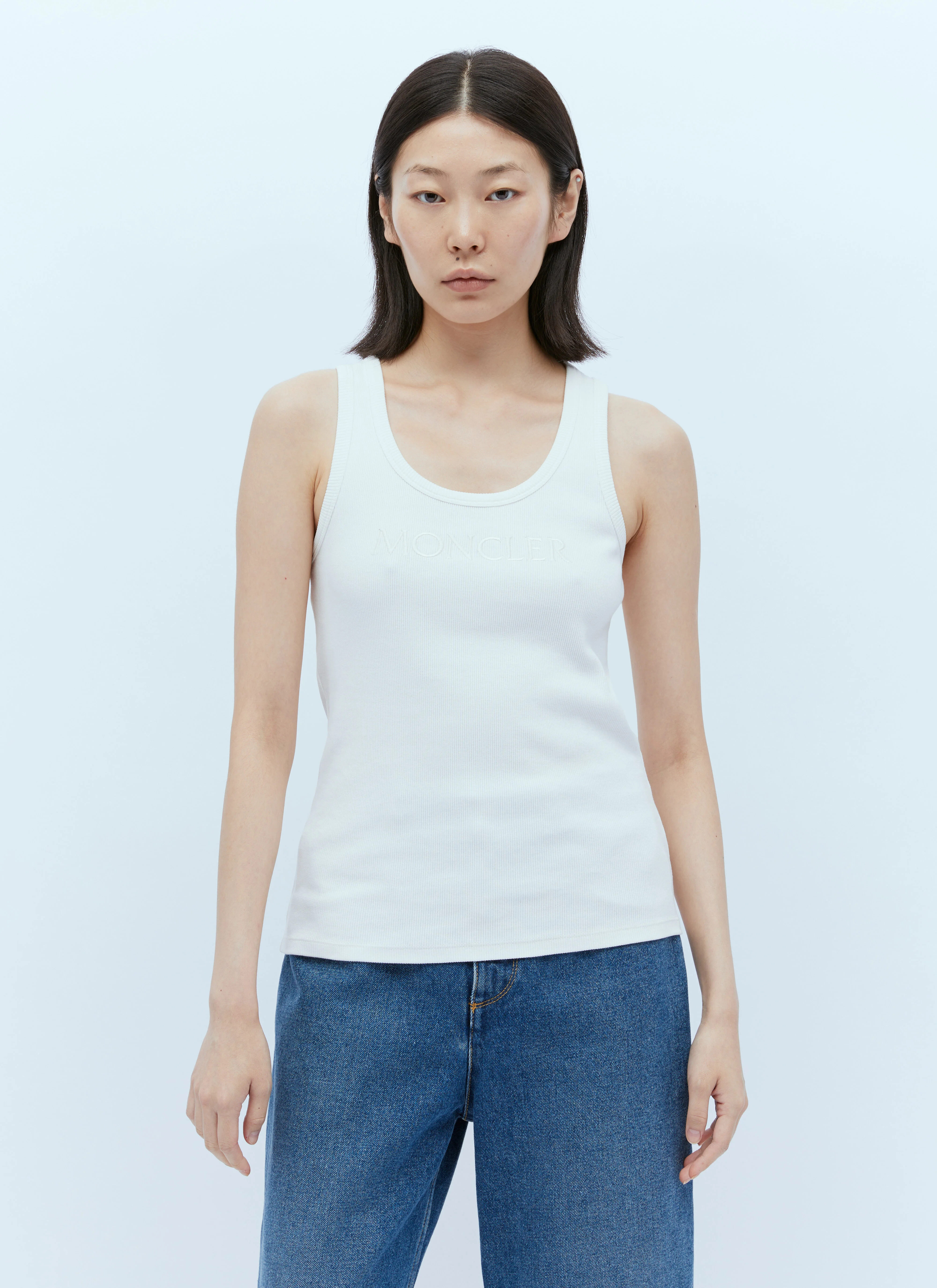 Logo embroider tank top in ribbed cotton. - Scoop neck - Front logo embroidery - Ribbed - 98% Cotton, 2% Elastane. Hand wash - Color: White - Code: 8P00006 89AK6 034