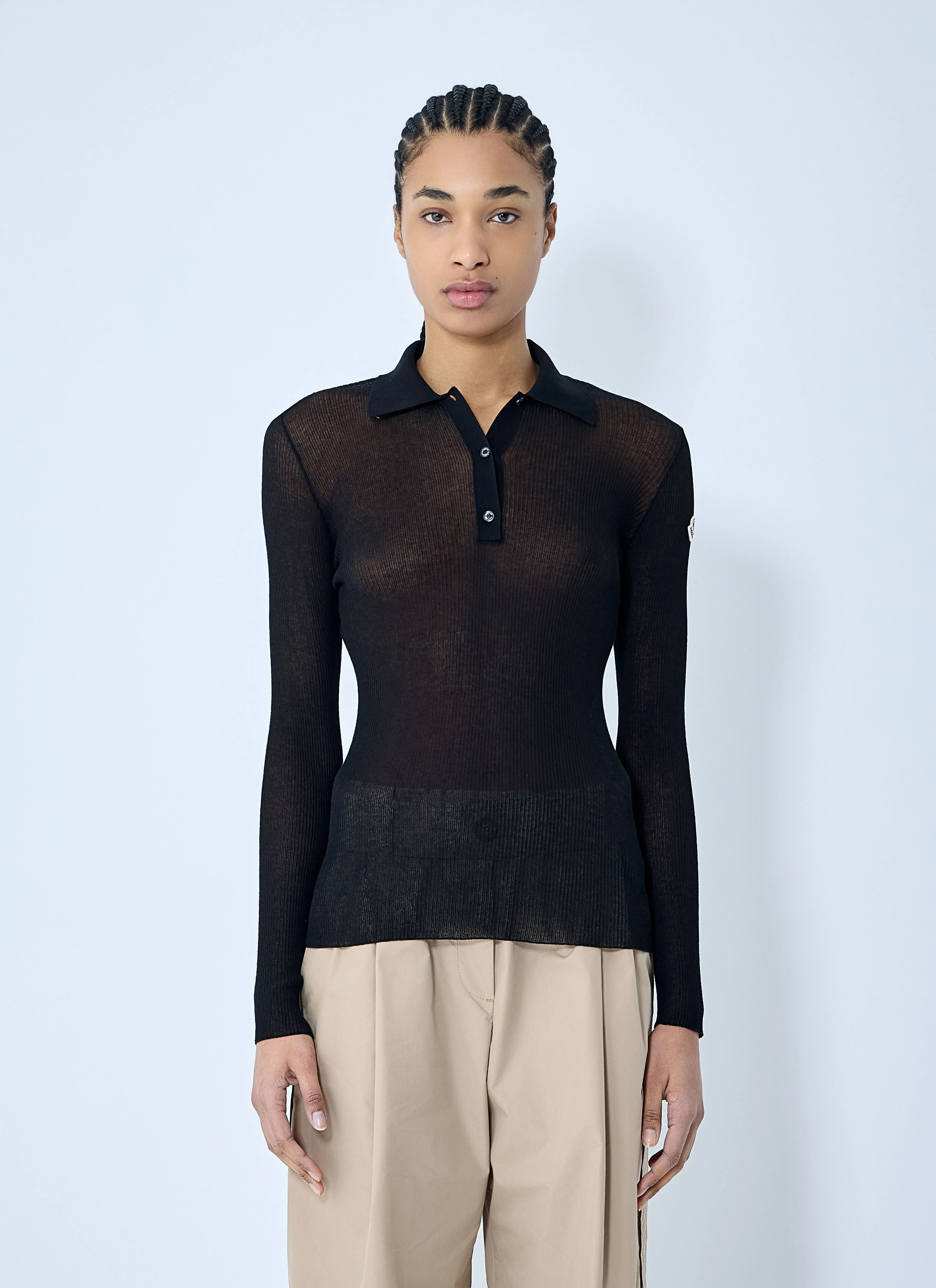 Polo shirt in lightweight knit. - Classic collar - Front button fastening - Long sleeves - Logo motif at side - 100% Cotton. Machine wash cold - Color: Black - Code: 9A00005 M1732 999