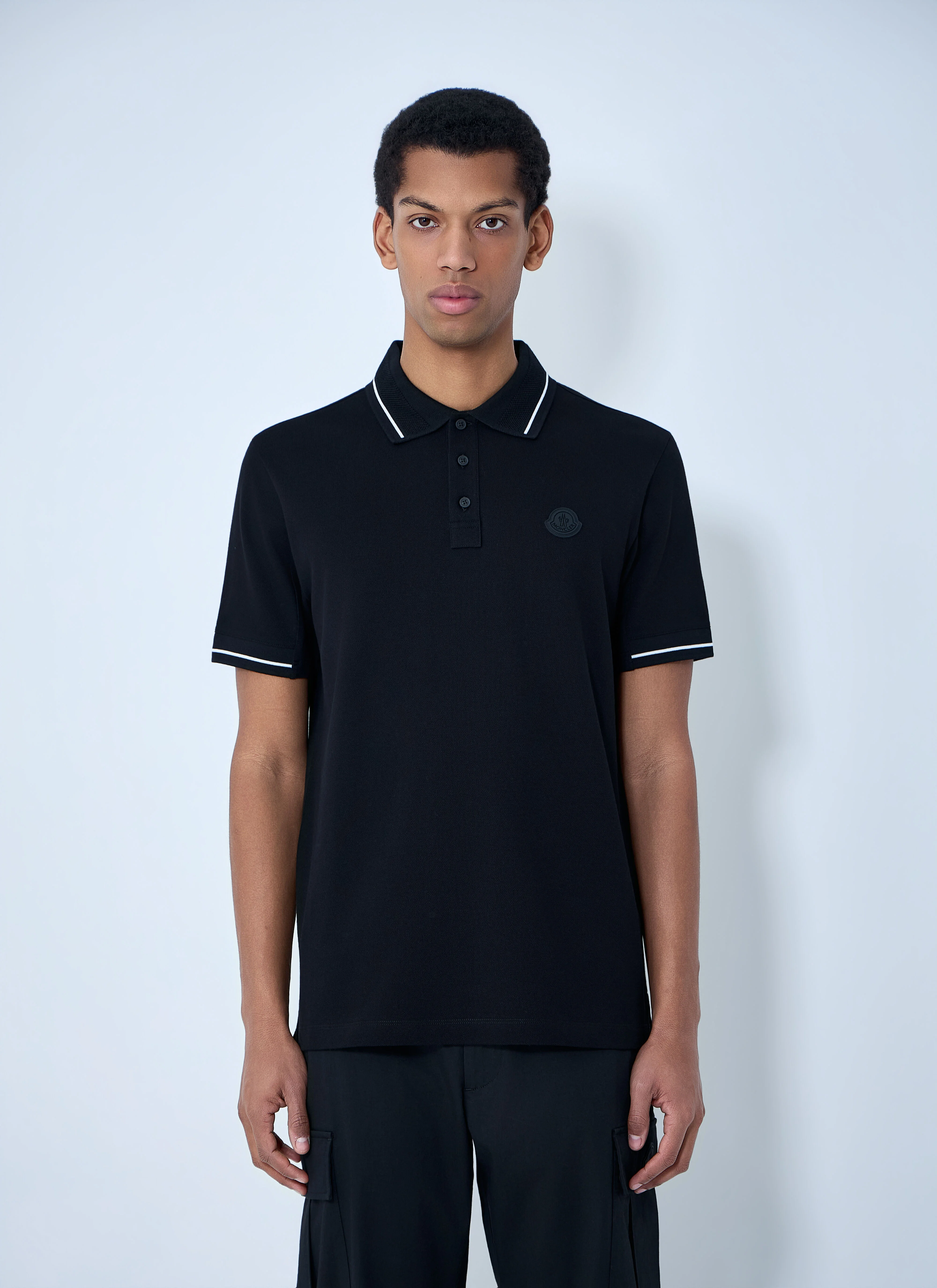 Short-sleeve polo shirt in cotton pique. - Ribbed collar - Front button placket - Embroidered chest logo - 100% Cotton. Machine wash cold - Color: Black - Code: L1091 8A00013 89A16 999