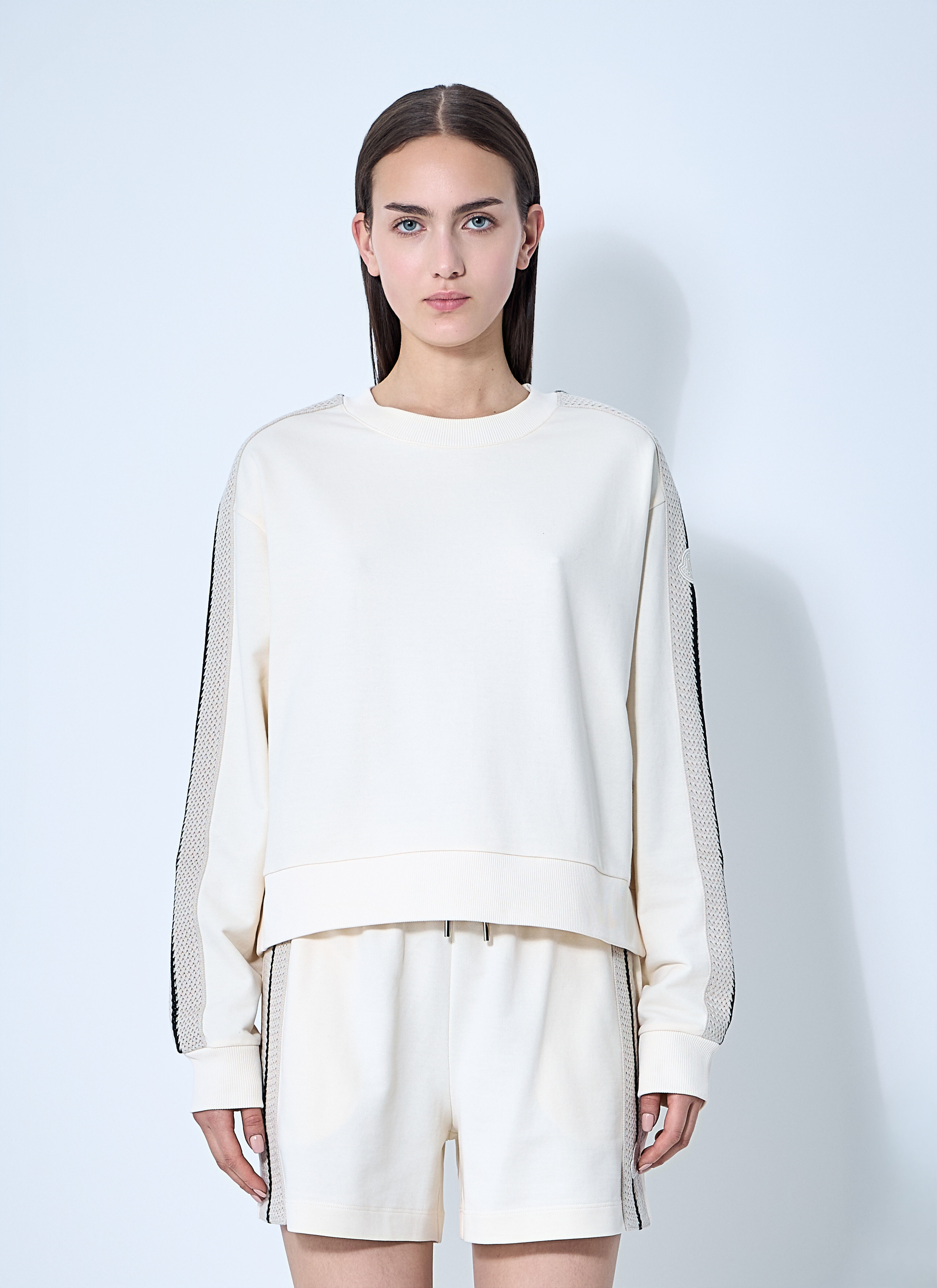 Logo motif sweatshirt in cotton jersey with knit trim at sleeves. - Crewneck - Long sleeves - Side logo motif - Rib trims - 100% Cotton. Machine wash cold - Color: Beige - Code: 8G00033 89A1K 034