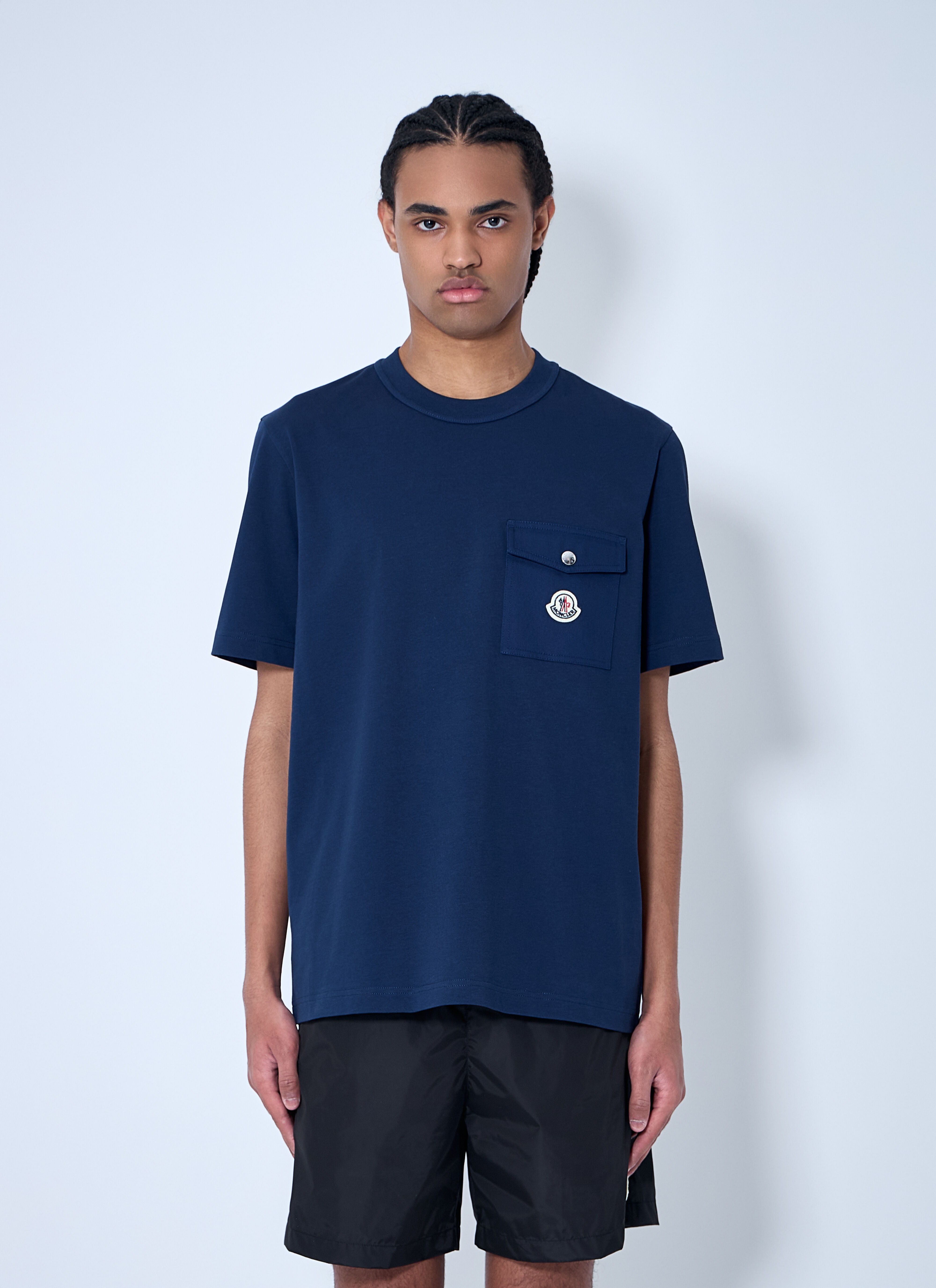 Logo motif T-shirt in cotton-jersey. - Crewneck - Short sleeves - Front patch pocket with logo motif - 100% Cotton. Machine wash cold - Color: Blue - Code: 8C00032 89AVF 7A9