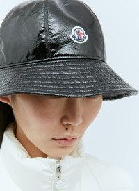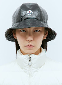 Logo patch bucket hat in glossy finish. - Round crown - Quilted dropped brim - Front logo patch - 89% Polyester, 7% Cotton, 3% Viscose, 1% Polyamide. Hand wash - Color: Black - Code: 3B00011 - 596L1 999