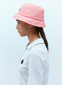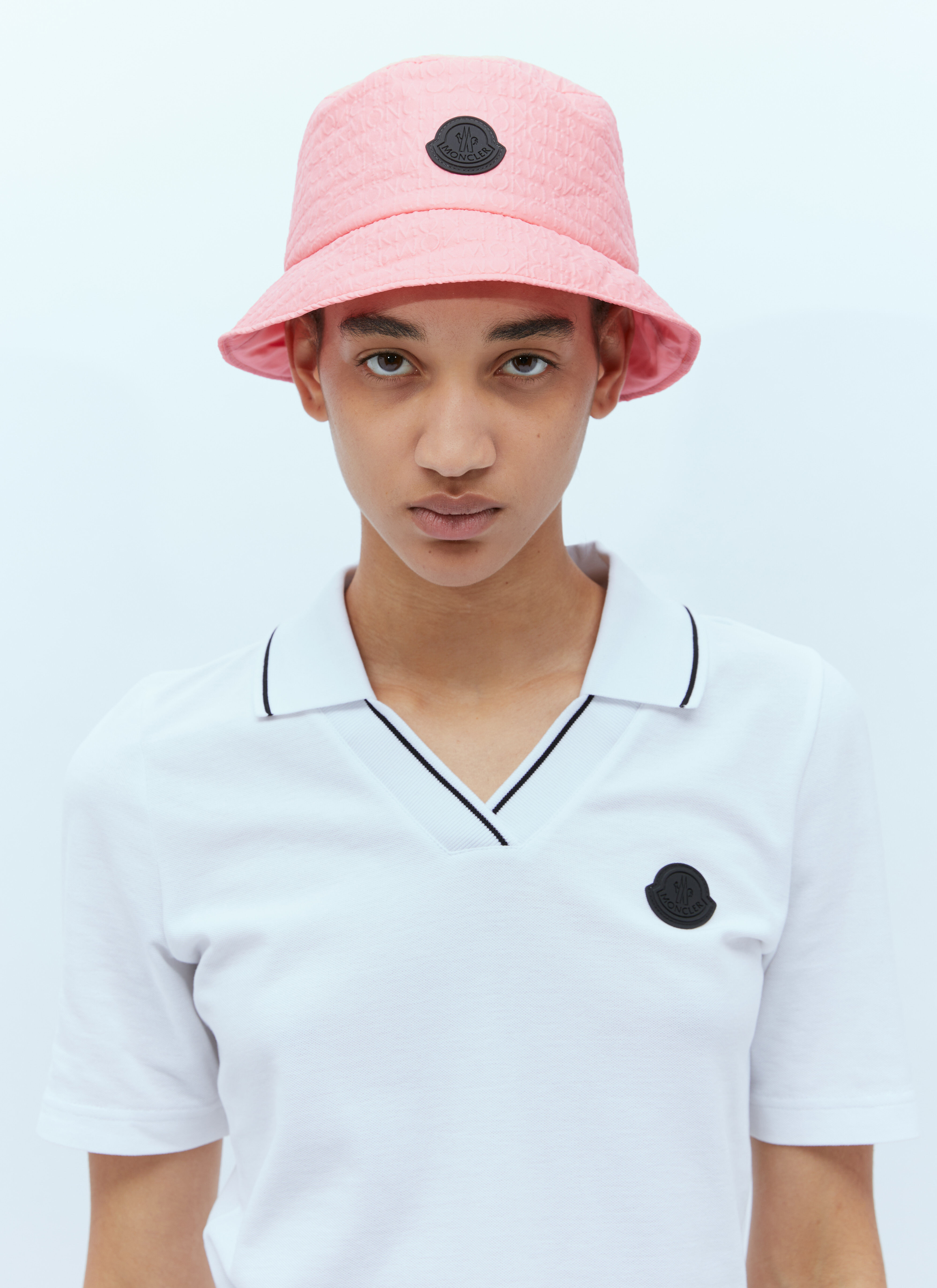 Logo patch bucket hat in embossed shell weave. - Flat crown - Dropped brim - Front logo patch - all-over logo motif - 100% Polyamide - Color: Pink - Code: 3B00006 597C3 415