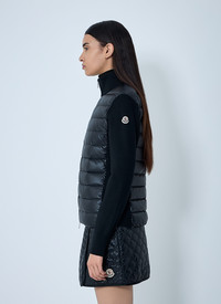 Quilted crdigan with knitted sleeves and rear panel. - Stand collar - Front zip fastening - Chest logo motif - Side zip pockets - Quilted padding - 100% Wool. Contrast: 100% Nylon. Dry clean - Color: Black - Code: 9B00023 M1131 999