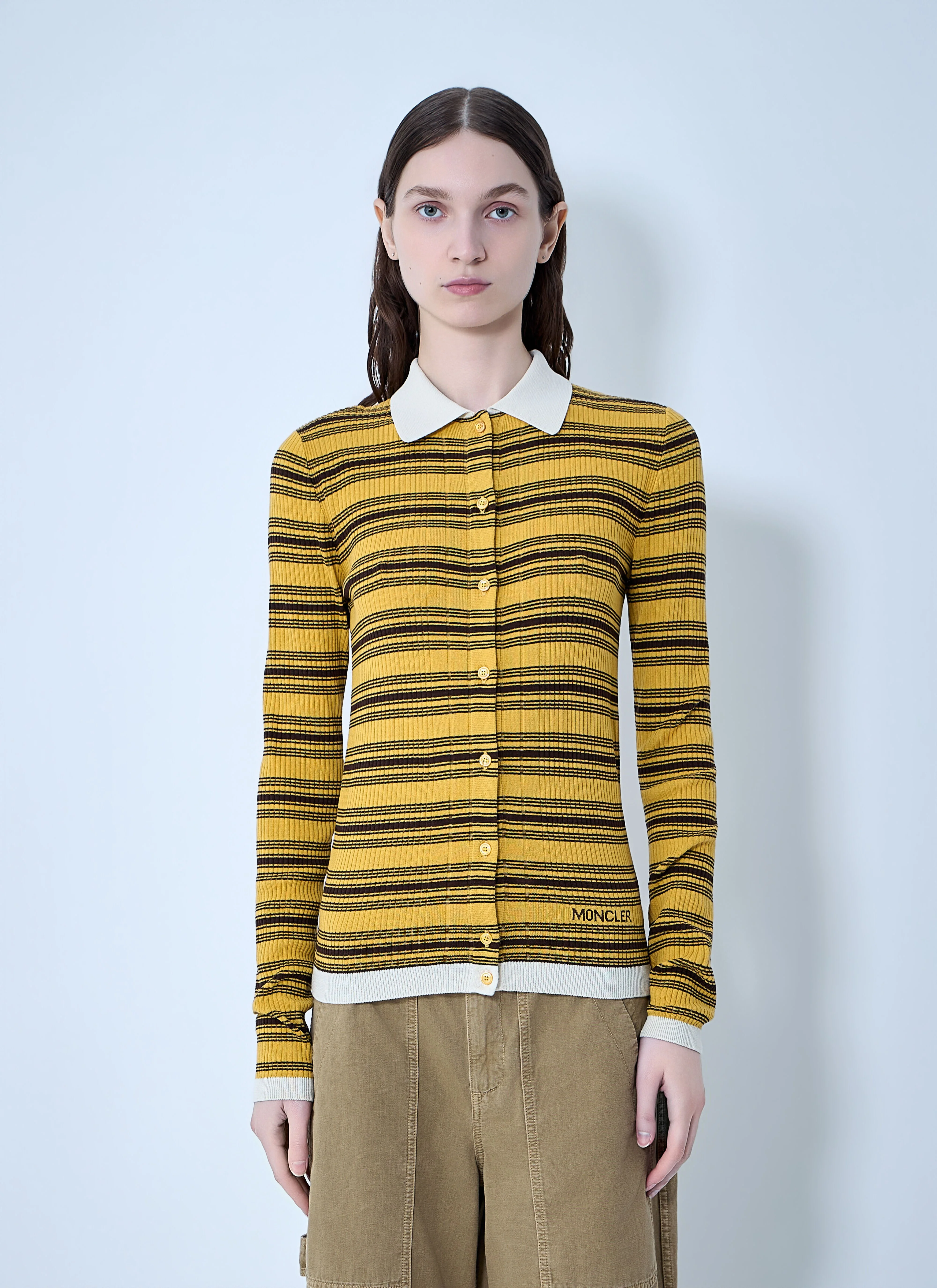 Long-sleeve cardigan with classic collar and button fastening. - Classic collar - Front button fastening - Long sleeves - 100% Cotton - Color: Yellow - Code: L1093 9A00004 M9371 F12