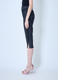black mesh raw denim capri jeans