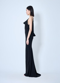 black leather harness backless crepe gown