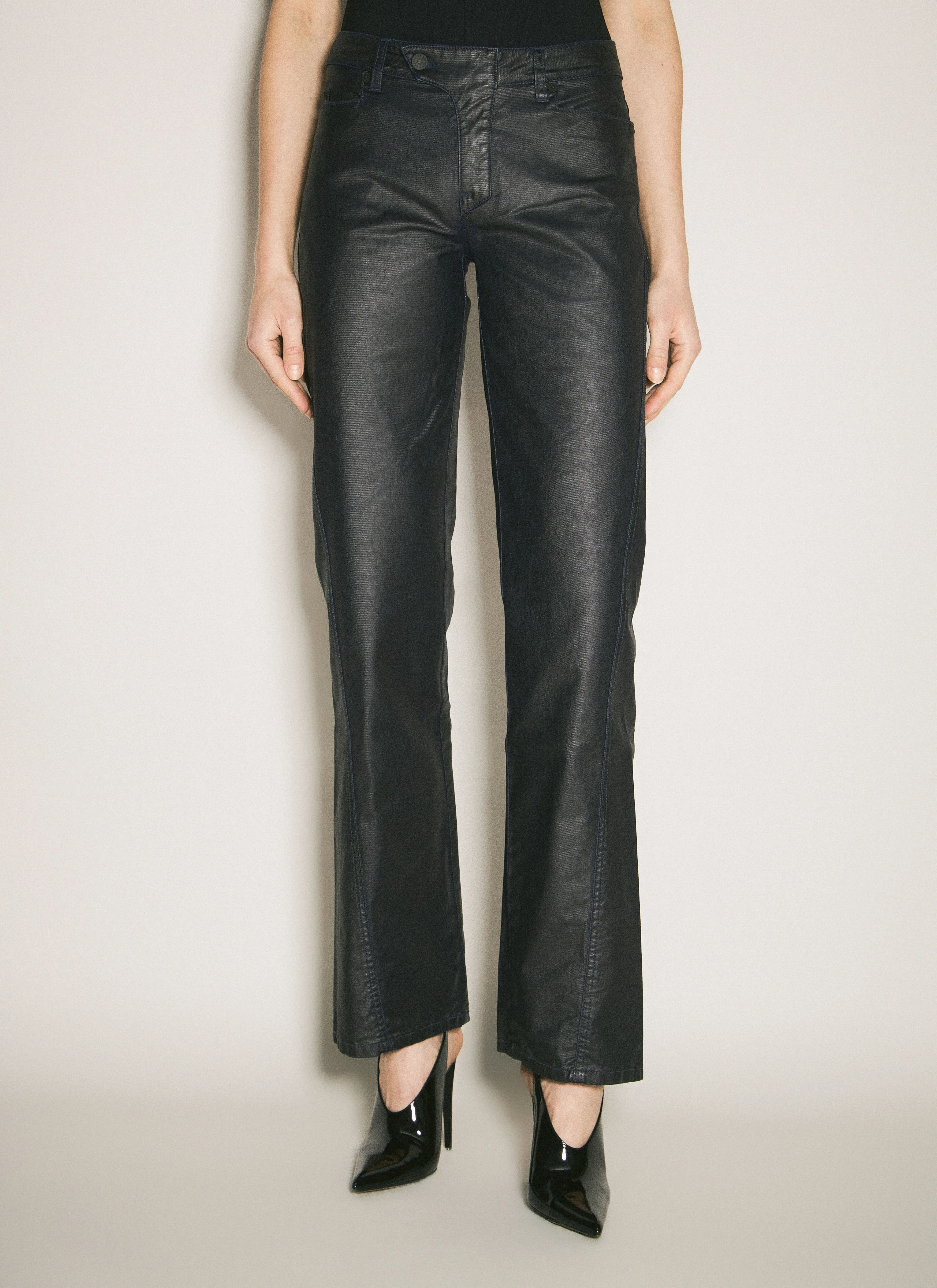 Straight-leg pants in waxed cotton. - Low rise - Top-button and zip-fly fastening - Belt loops - Five pockets - Twisted seams - 100% Cotton. Dry clean - Color: Black - Code: 24W6PA0444286