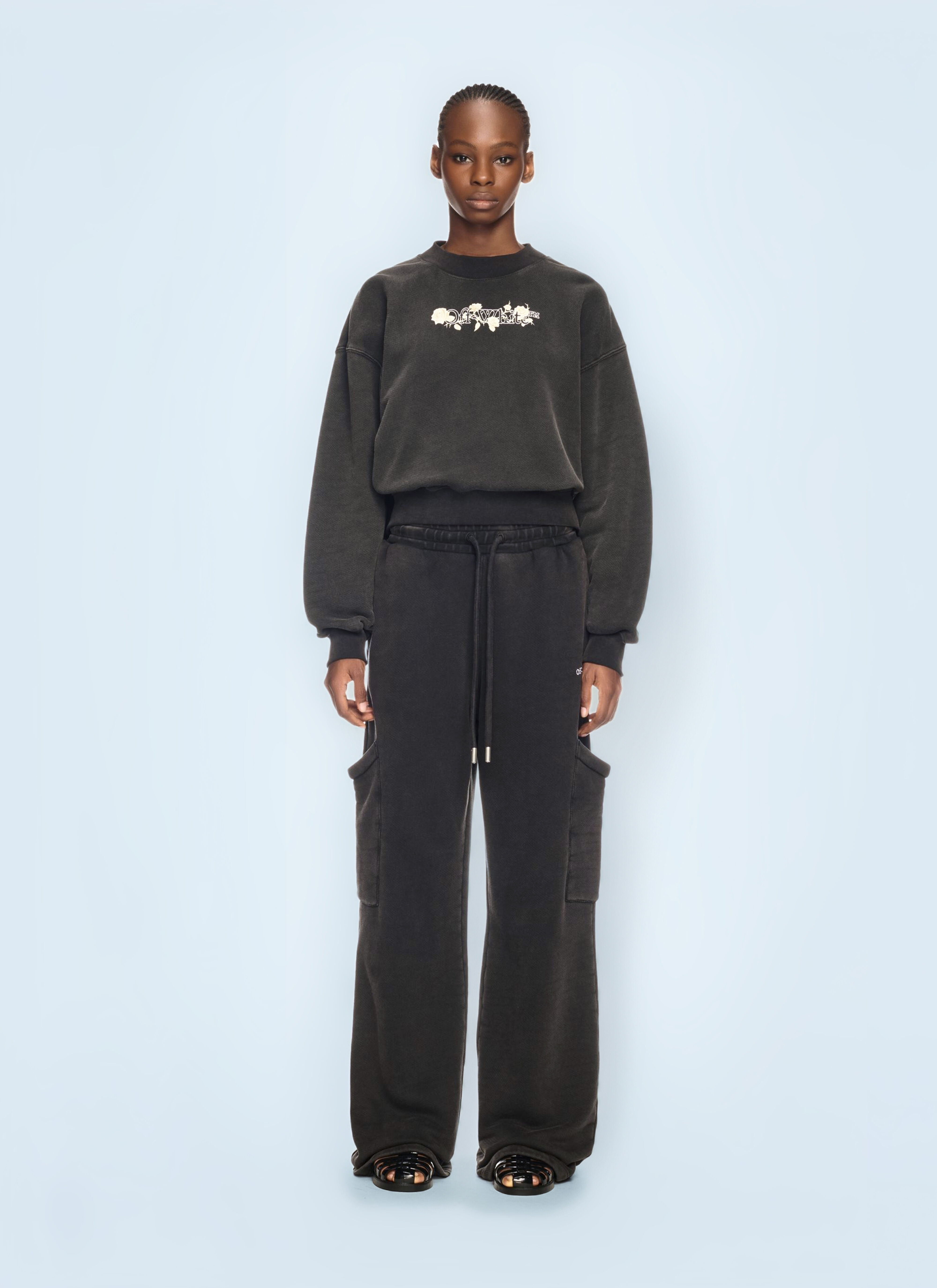 Logo motif sweatshirt in cotton jersey. - Crewneck - Long sleeves - Front logo motif - Rib trims - 100% Cotton. Hand wash - Color: Black - Code: OWBA075S25FLE0010701