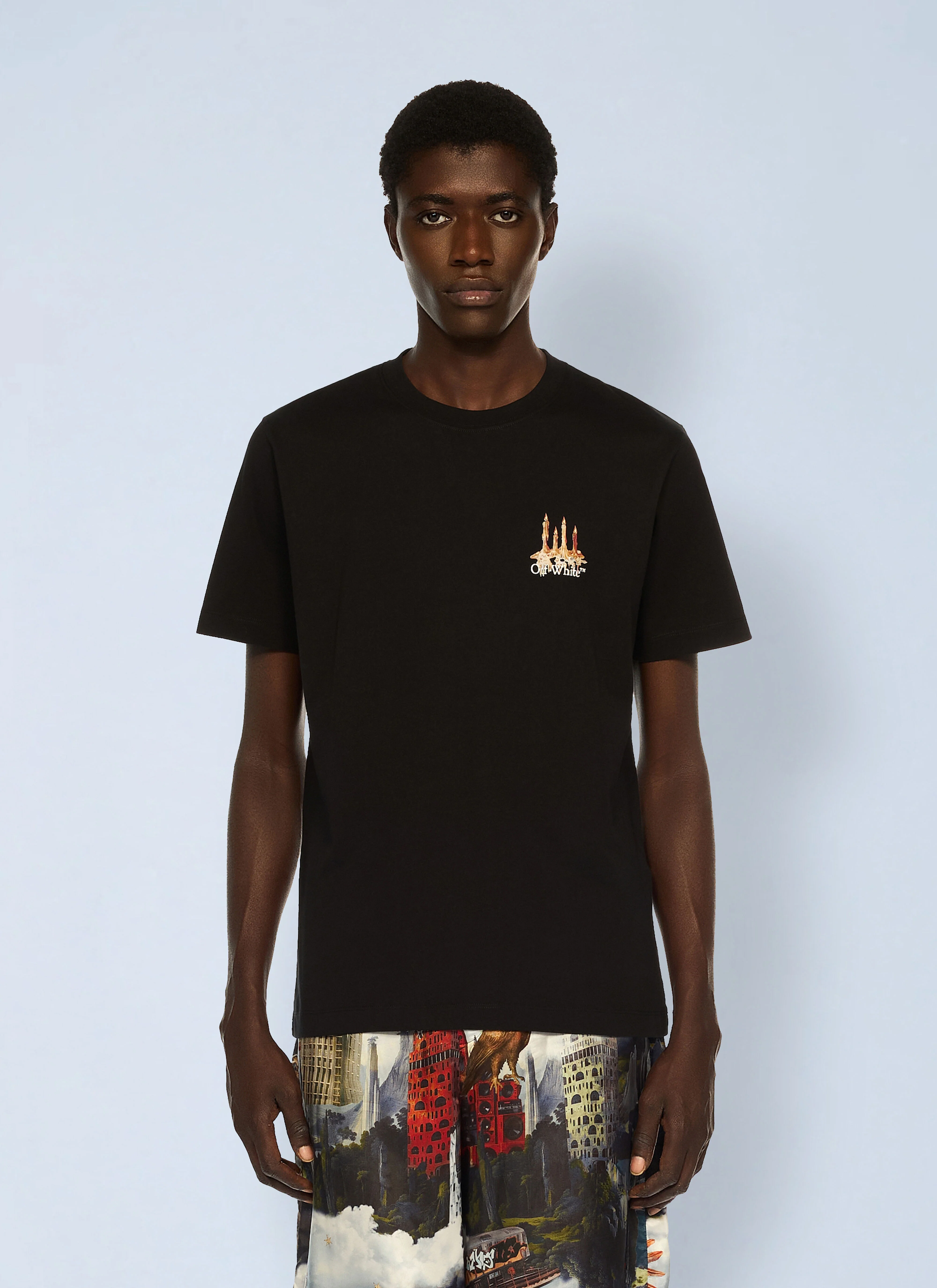 Cotton t-shirt with architectural graphic. - Cotton construction - Architectural front graphic - Front branding - Back graphic design - Crewneck - Straight hem - 100% Cotton. Rib Details: 95% Cotton, 5% Elastane. Dry clean - Color: Black - Code: OMAA027F25JER0021001