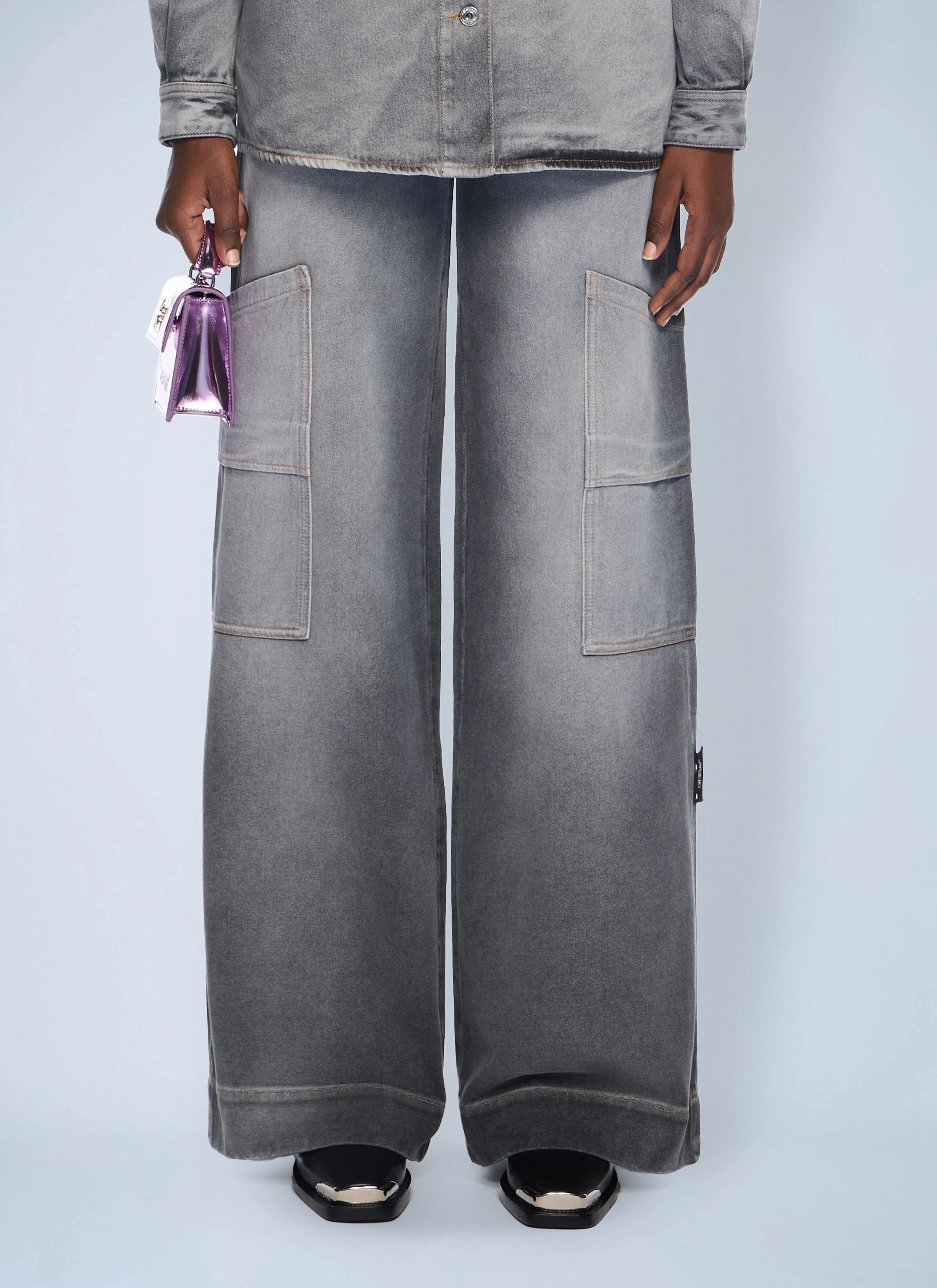 Wide-leg denim cargo pants. - Premium denim - Wide-leg silhouette - Front and rear cargo pockets - Branding at back panel - Belt loops - Concealed fastening - Made in Italy - 100% Cotton. Dry clean - Color: Black - Code: OWYB01IF25DEN0011200