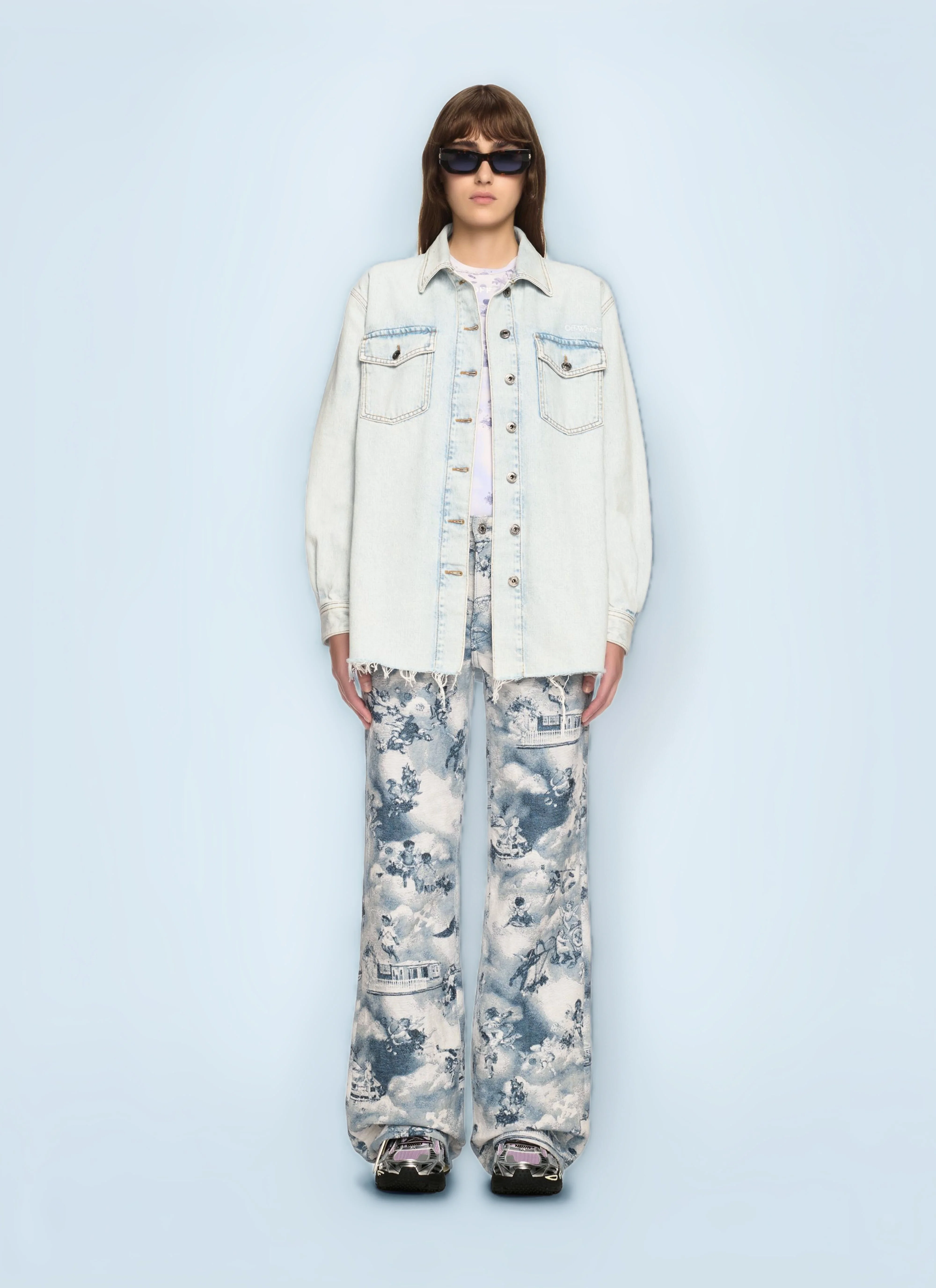 Button-down shirt in denim weave. - Classic collar - Front button fastening - Long sleeves - Chest patch pockets - Rear logo motif - Button-fastening cuffs - 100% Cotton. Hand wash - Color: Blue - Code: OWYQ004S25DEN0014001